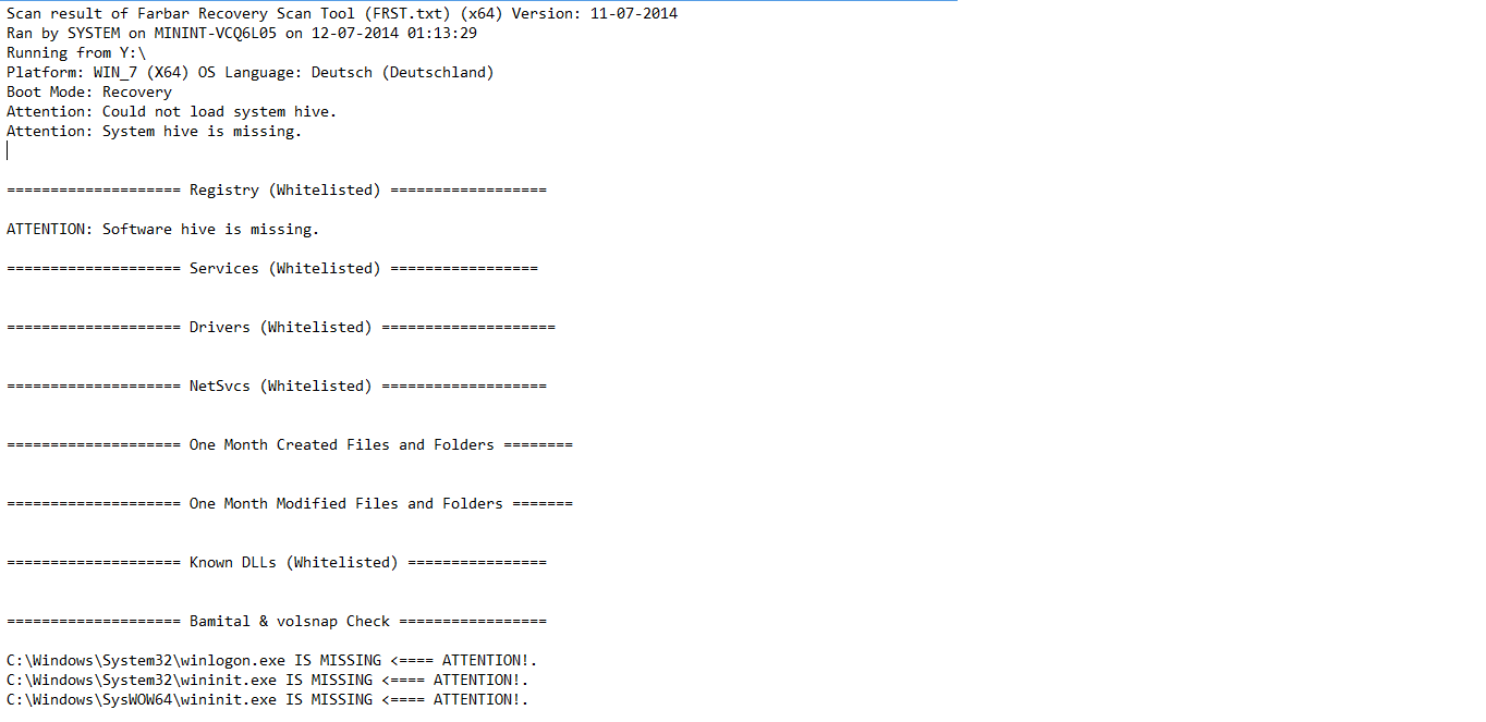 Also führte ich eine Festplatten Überprüfung durch mit dem Programm -> FRST