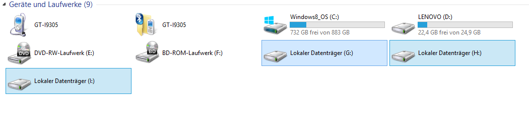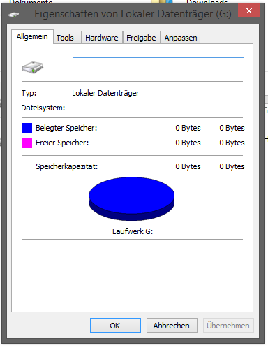 Was auch komisch ist... Unter jedem Datenträger wird das Speichervolumen aufgezeigt. Also unter dem Buchstaben und Name der Partition steht ja dann zb. 200 GB frei von 500 GB! Dies ist bei mir nicht vorhanden! Wenn ich mit --> Rechtsklick ; Eigenschaften nach sehen will, zeigt es mir bei der Größe 0 Byte an!