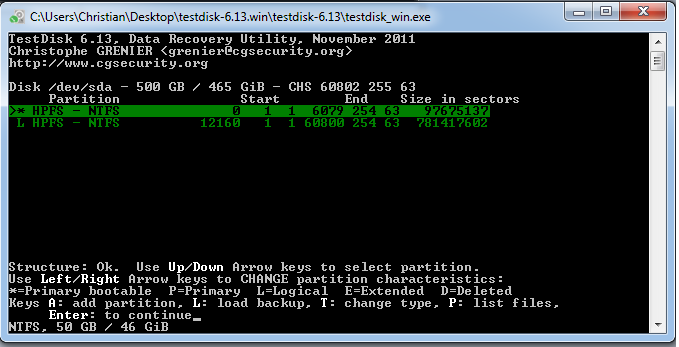 TestDisk 6.13, Data Recovery Utility, November 2011