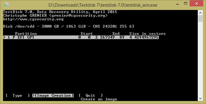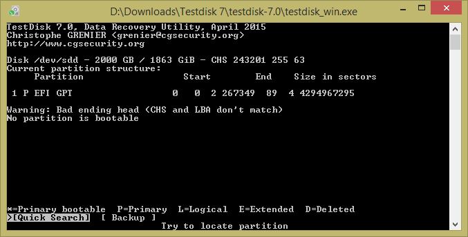 Wenn ich dann nur die Partition selber auswähle, dann erkennt Testdisk bei mir nicht mal die Partitionstabelle: