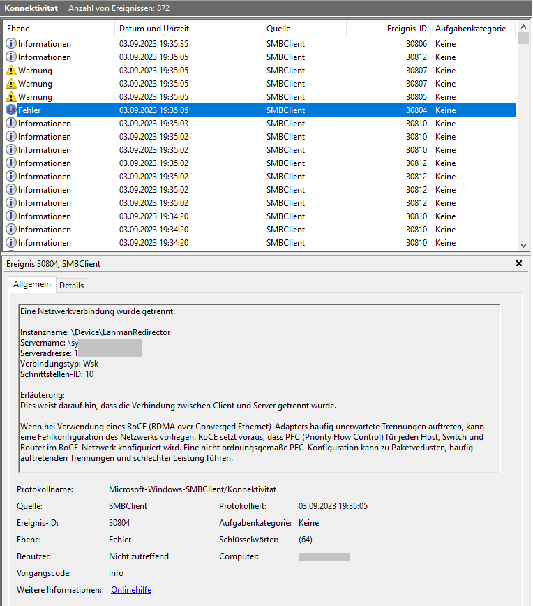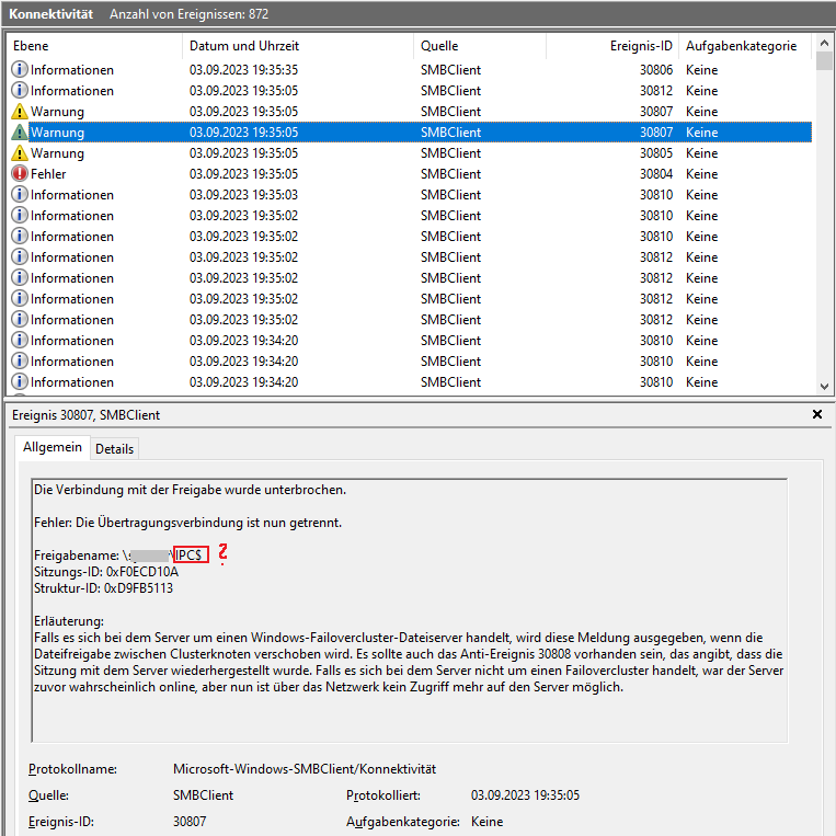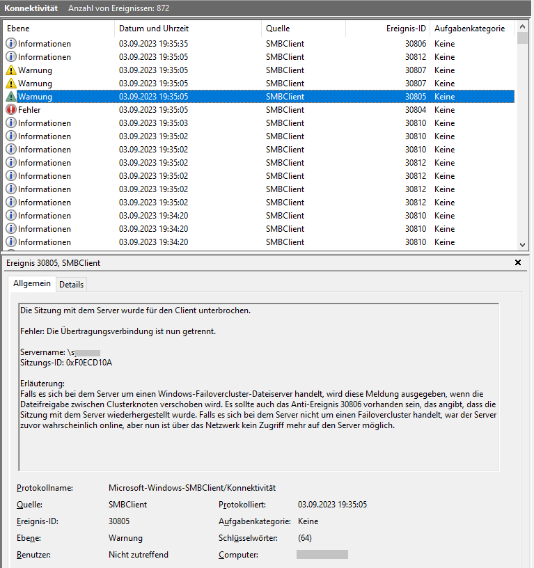 - Erneuter Zugriff auf Netzlaufwerk (mit 30+Sek. Wartezeit):