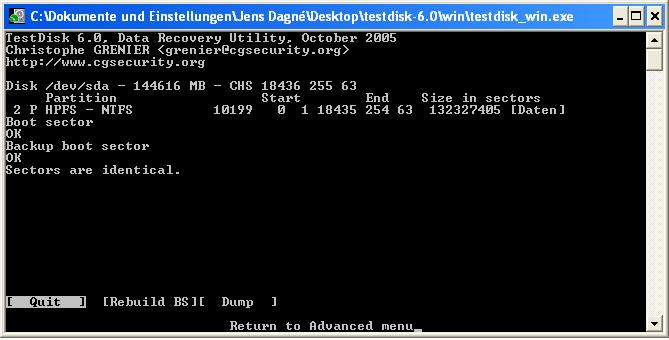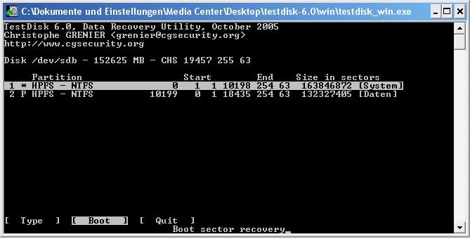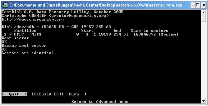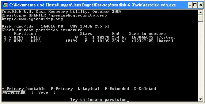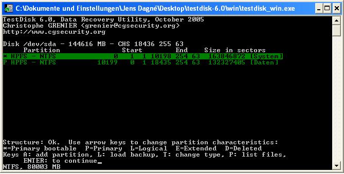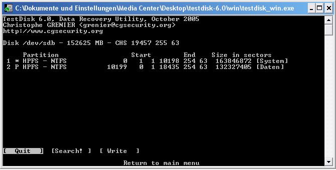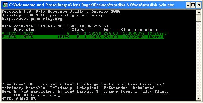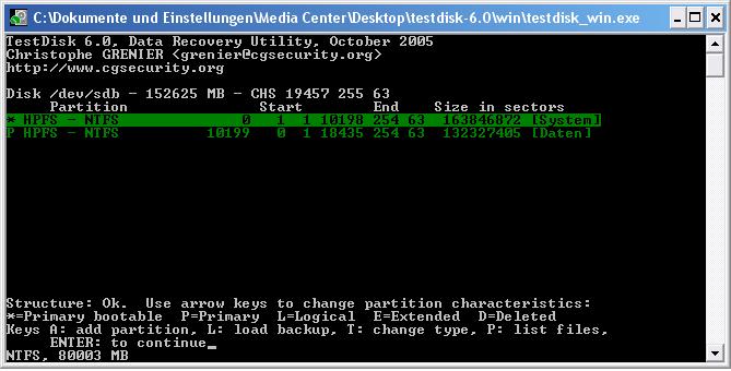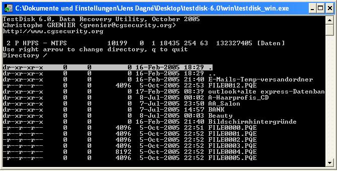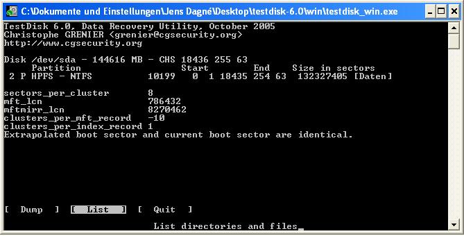 Mit dem Tool Testdisk finde ich die Partition und kann mit "p" auch die Daten auflisten.