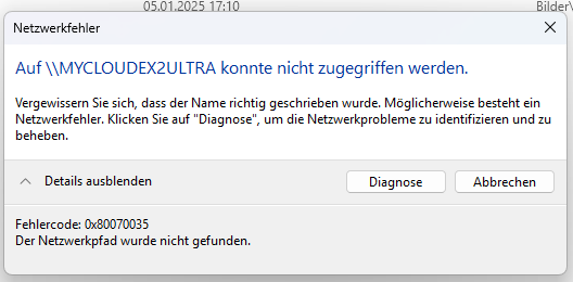habe seit dem Windows Update auf Win 11 24H2 das Problem, dass ich auf mein NAS nicht mehr zugreifen kann.