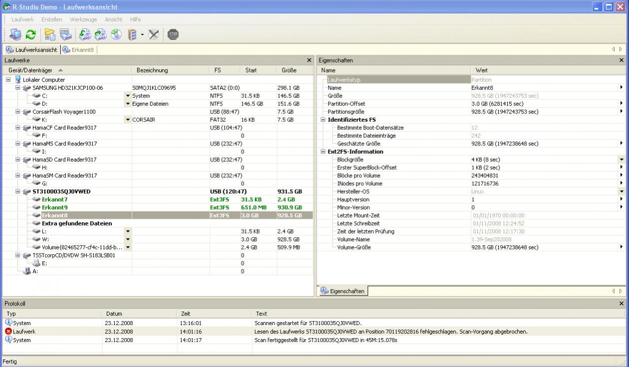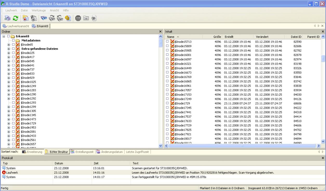 6. R-Studio Demo installiert und folgende Ergebnisse bekommen siehe Anhänge: 1-4