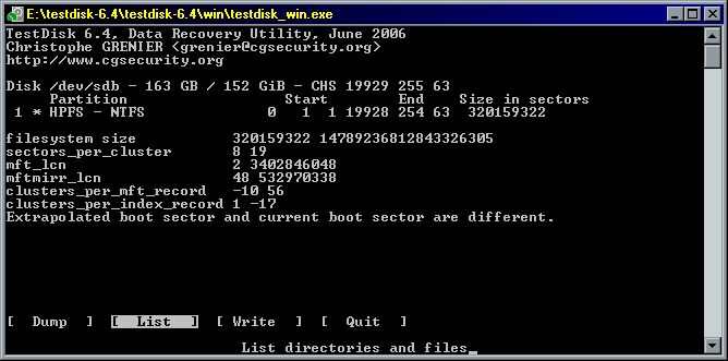 Bild2 und Bild 3: Testdisk nach der Analyse