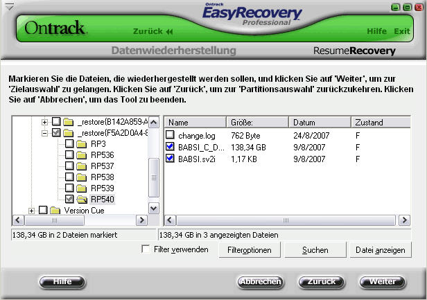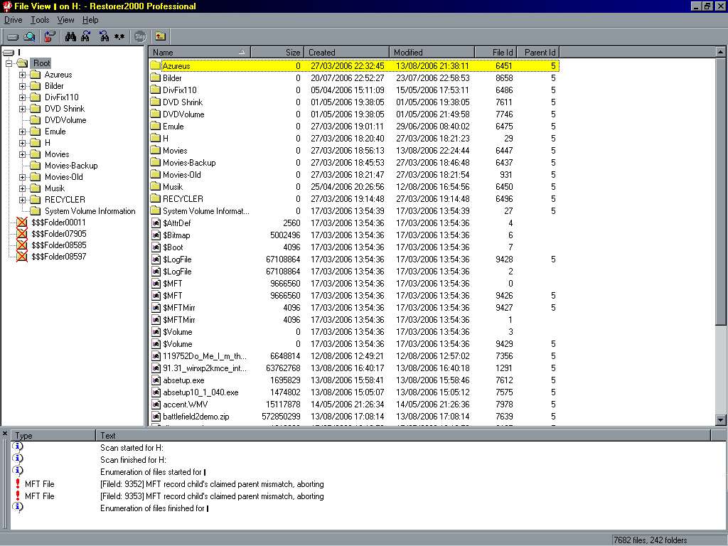 Ich lasse auch eben mal Restore2000 scannen, aber das dauert noch etwas, werde die Screenshots dann nachreichen.