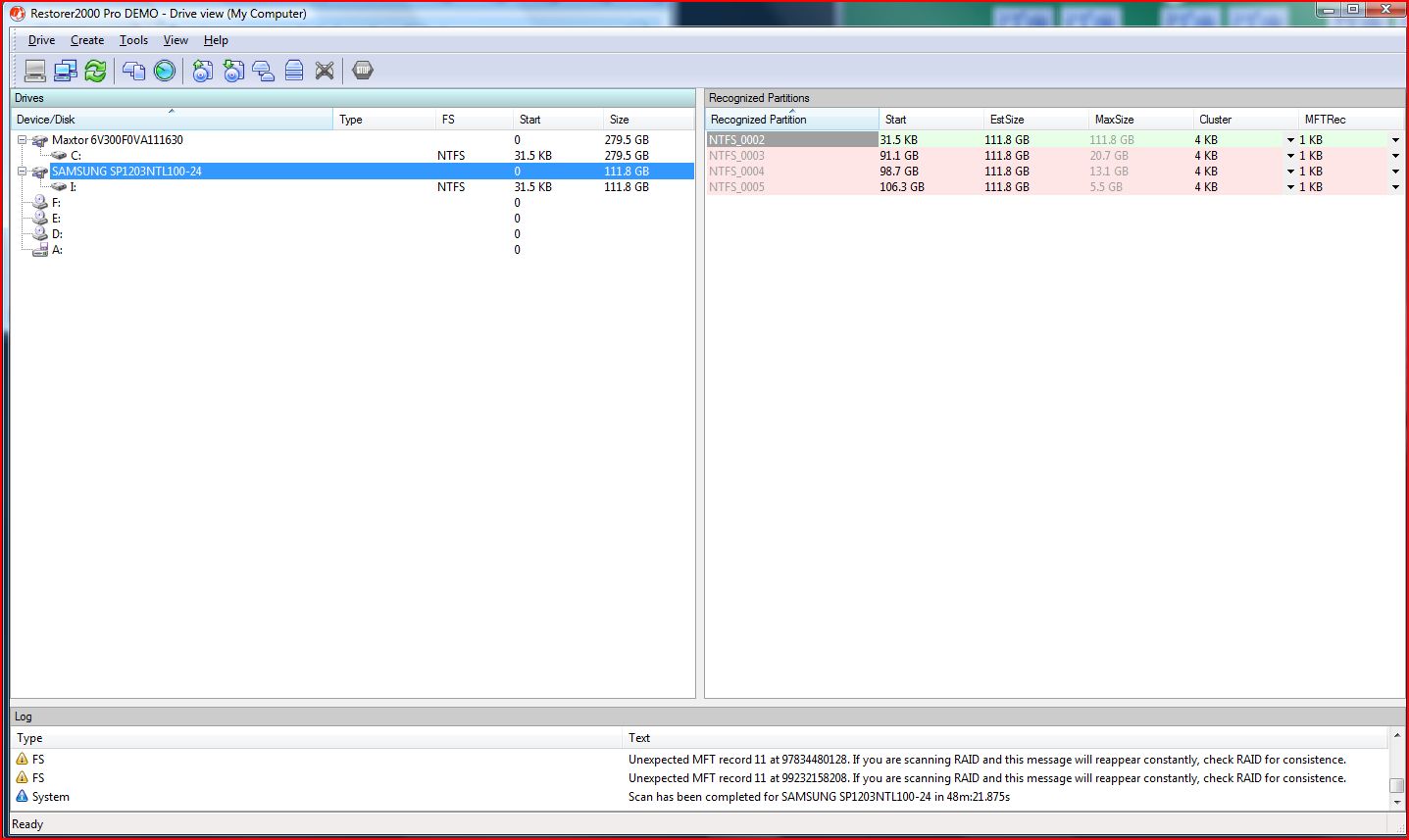 und sie in den Rechner eingebaut - aus/an und checkdisk!