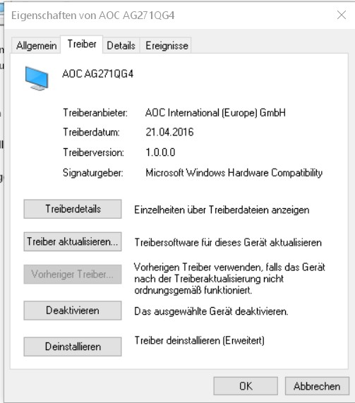 Leider bekomme ich nur 60 Hz angezeigt und das bei jeder Auflösung.