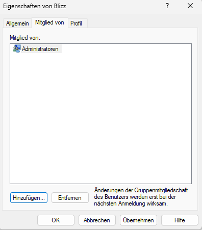 Laut netplwiz in den Benutzern ist mein Benutzeraccount in der Gruppe "Admin" deswegen absolut keine Ahnung was falsch ist.