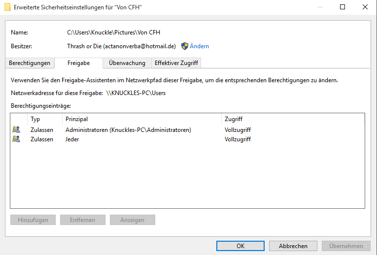 habe schon für den ordner und für einzelne datein versucht unter eigenschaften die zugriffsberechtigung auf administratoren zu ändern, allerdings ohne erfolg. habe mein microsoft konto auch schon mit dieser autentificator app da bestätigt, was auch nichts geändert hat. und ein lokales konto zu erstellen lässt mich meine bilder auch nicht sehen. verstehe das problem nicht.