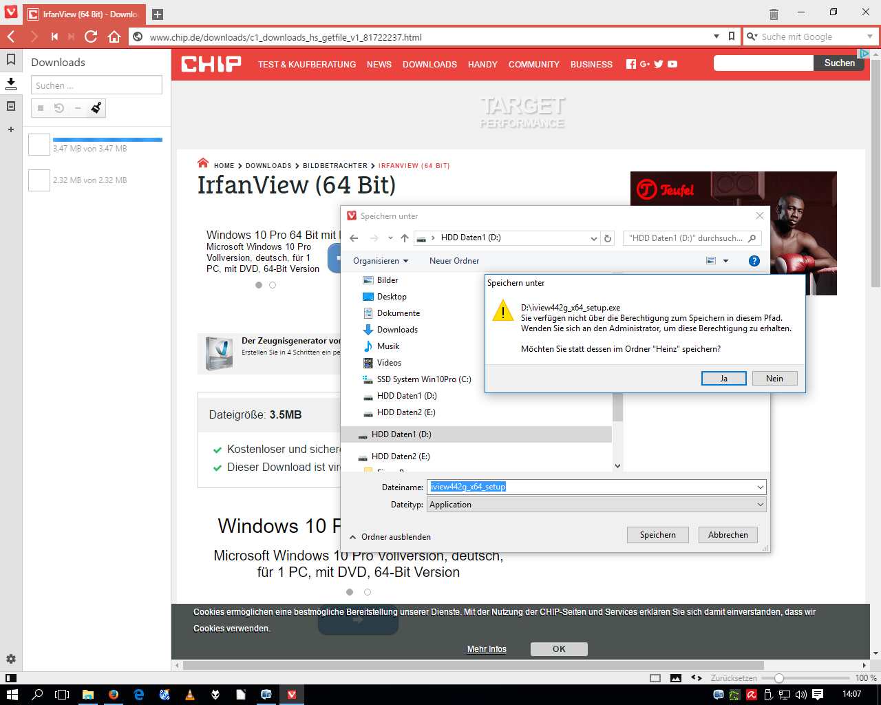 Keine Downloads auf LW D möglich?! Was stimmt an der Rechteverwaltung nicht?