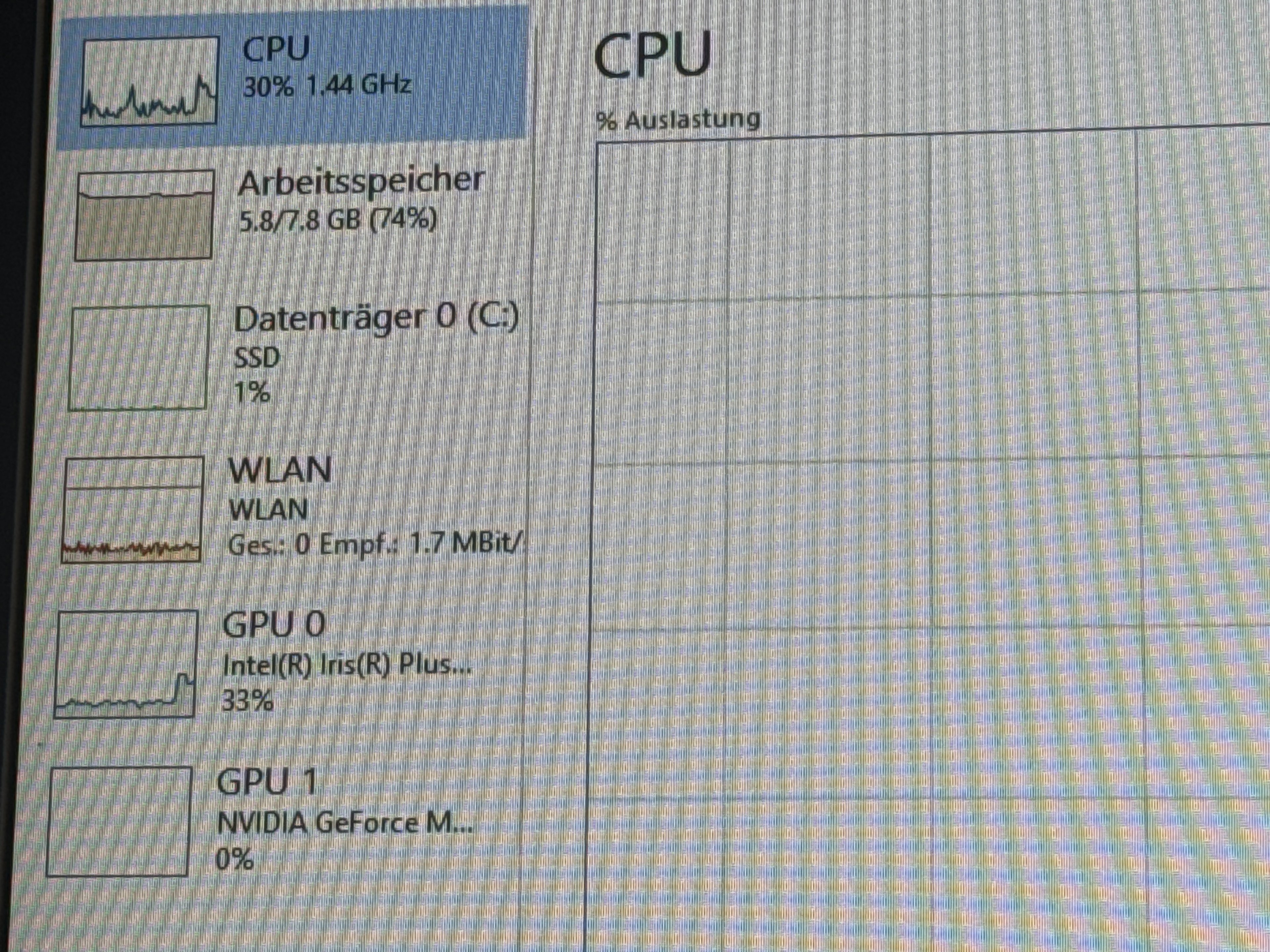 Ich kann kein Minecraft spielen ohne standbilder aber habe alle 2 minuten etwa für 10 sekunden 100-200 fps. Und mein Laptop (Lenovo) wird oft sehr heiss und laut. Sogar wenn ich nur twitch schaue ist 70% arbeitsspeicher belastet und 20% Cpu. Kann mir da bitte einer helfen ich kann nichts machen und habe diesen Laptop erst vor 3 Jahren gekauft. (Das bild habe ich gemacht als ich nichts offen hatte ausser Task Manager.) ich habe ein Lenovo Ideapad 5 15IIL05 - Notebook (15.6“, 256GB SSD + 1 TB HDD, Graphitgrau)