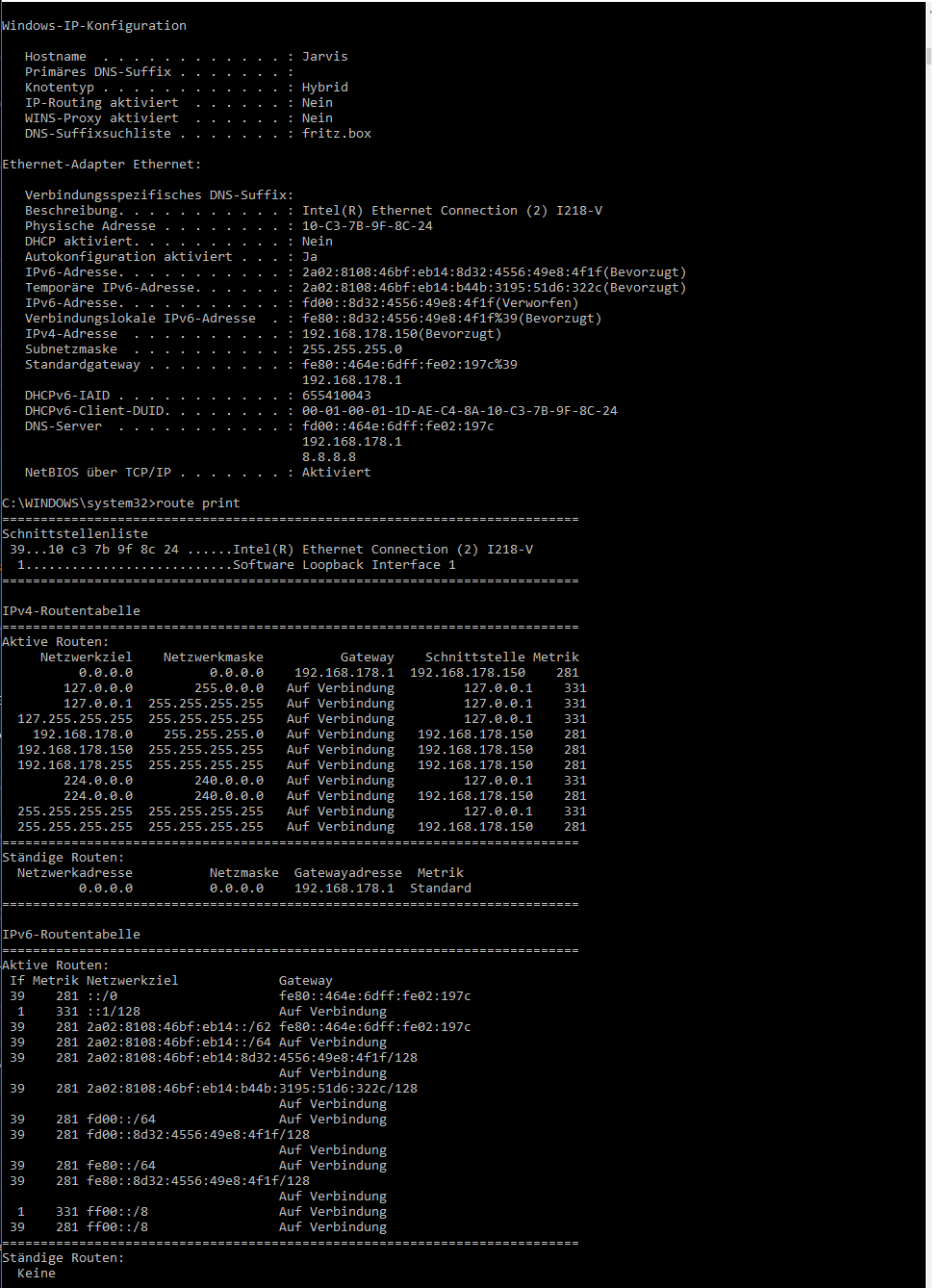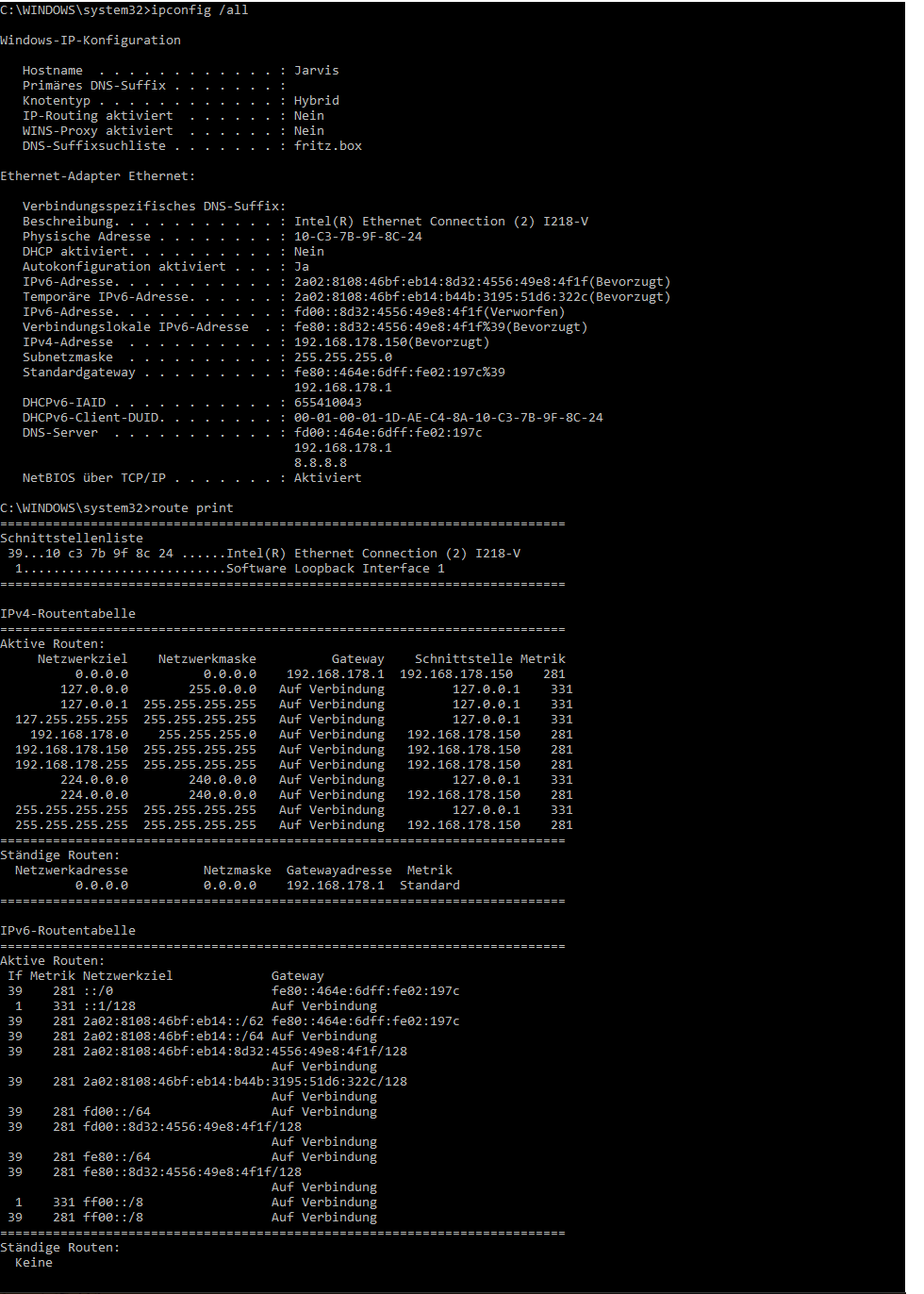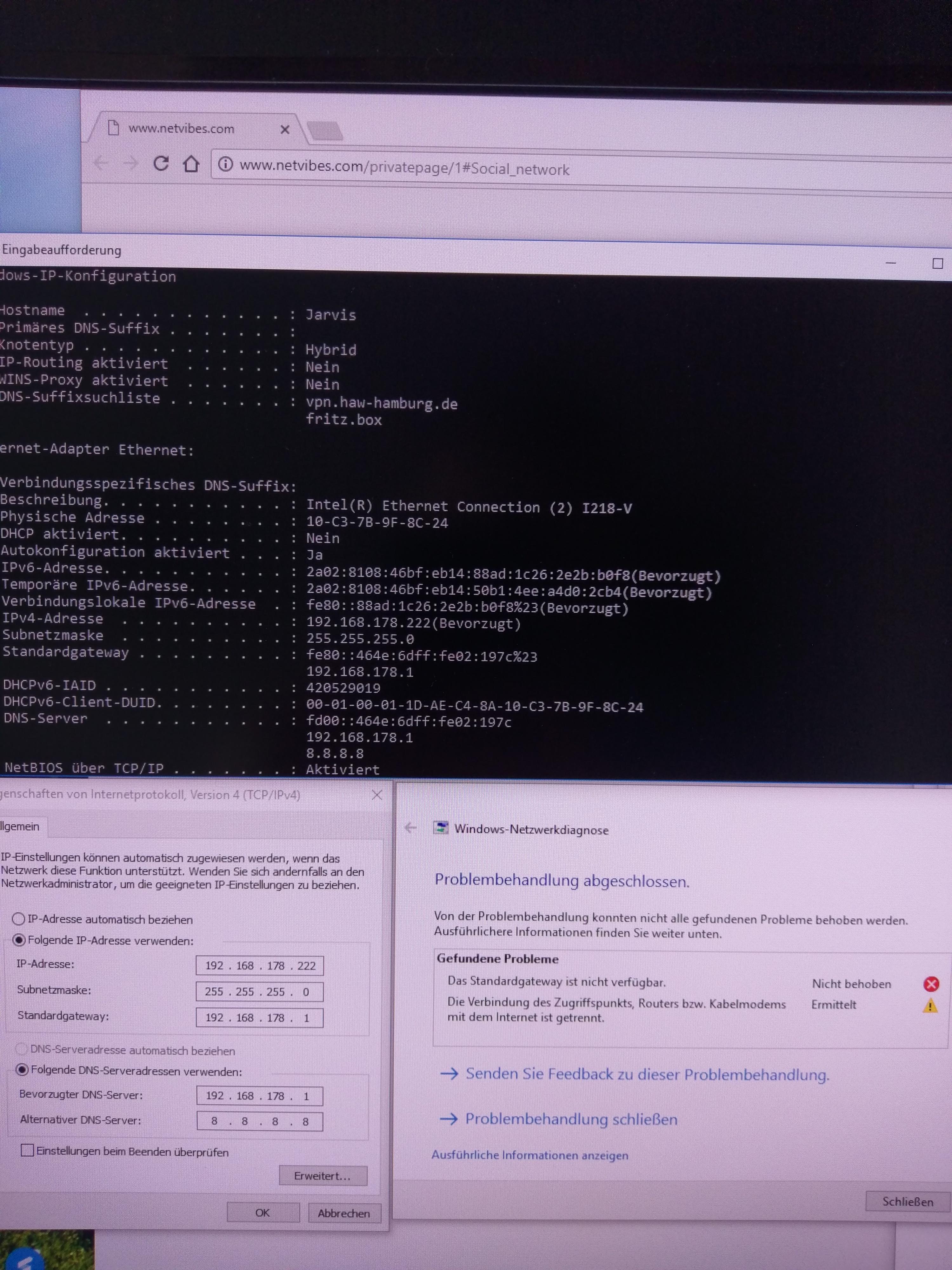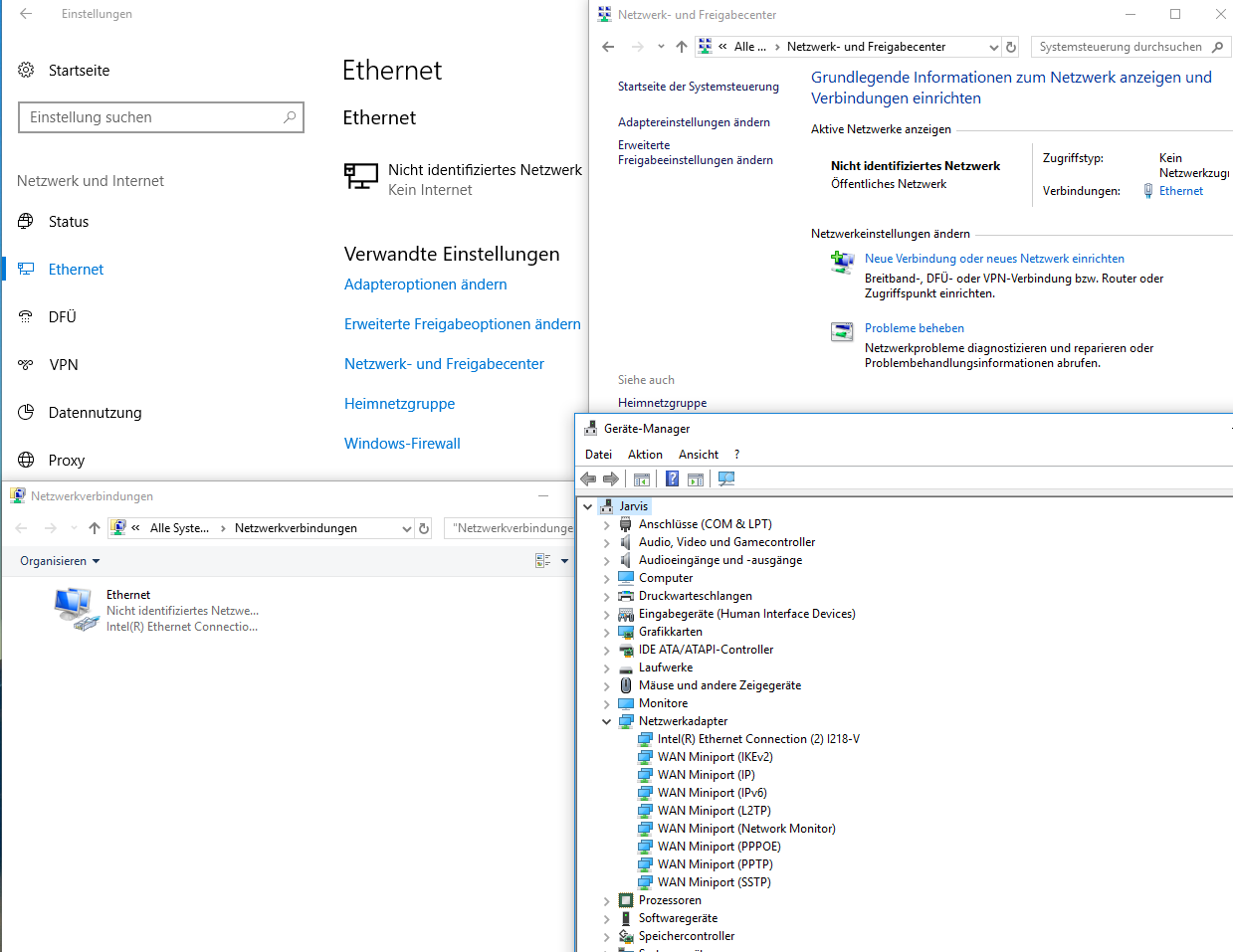 Danach wieder alles Neugestartet. Seit dem habe ich Meldung, dass Ethernet keine gültige IP-Konfiguration erhält.