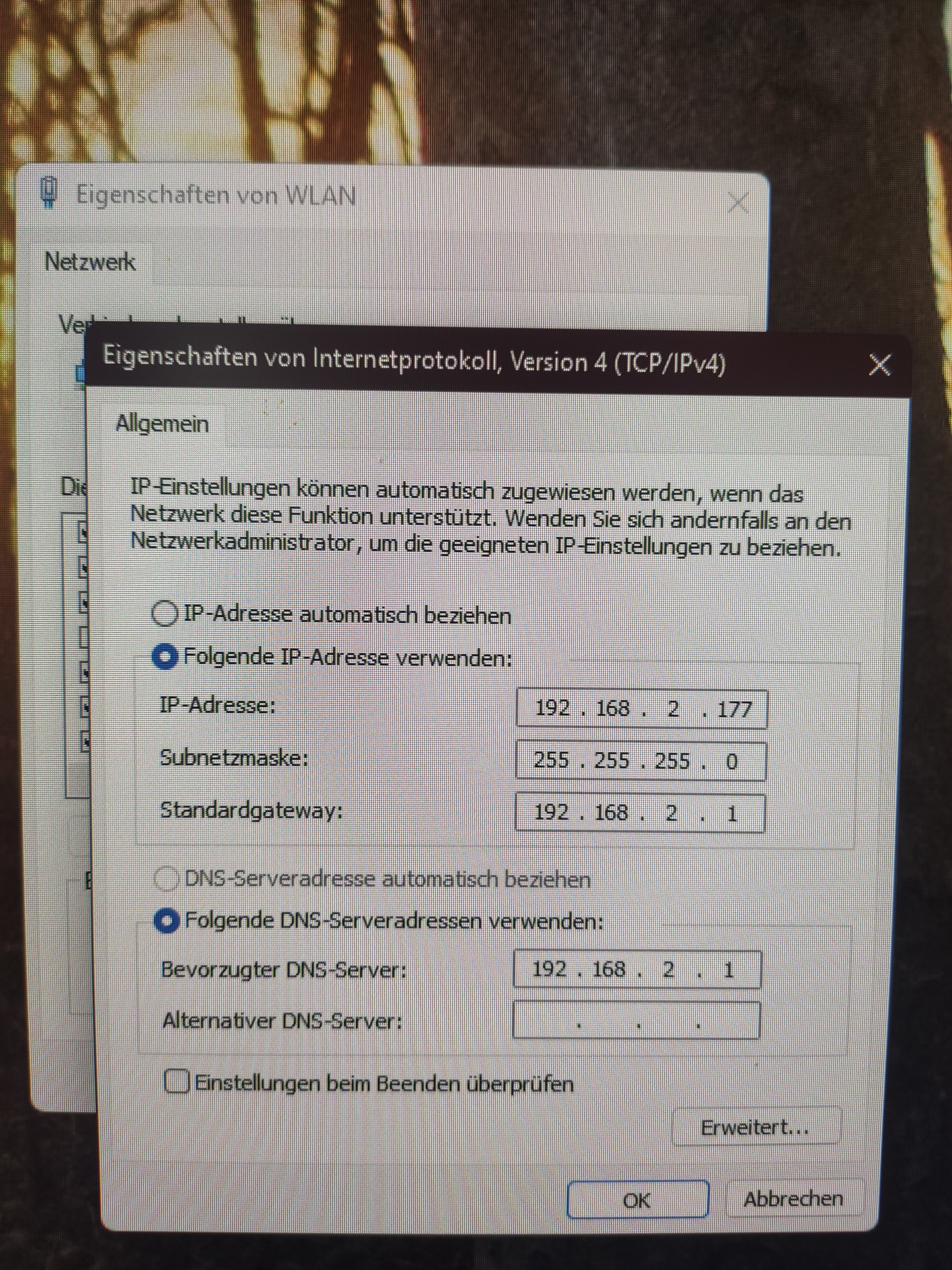 - IP Adresse manuell zugewiesen