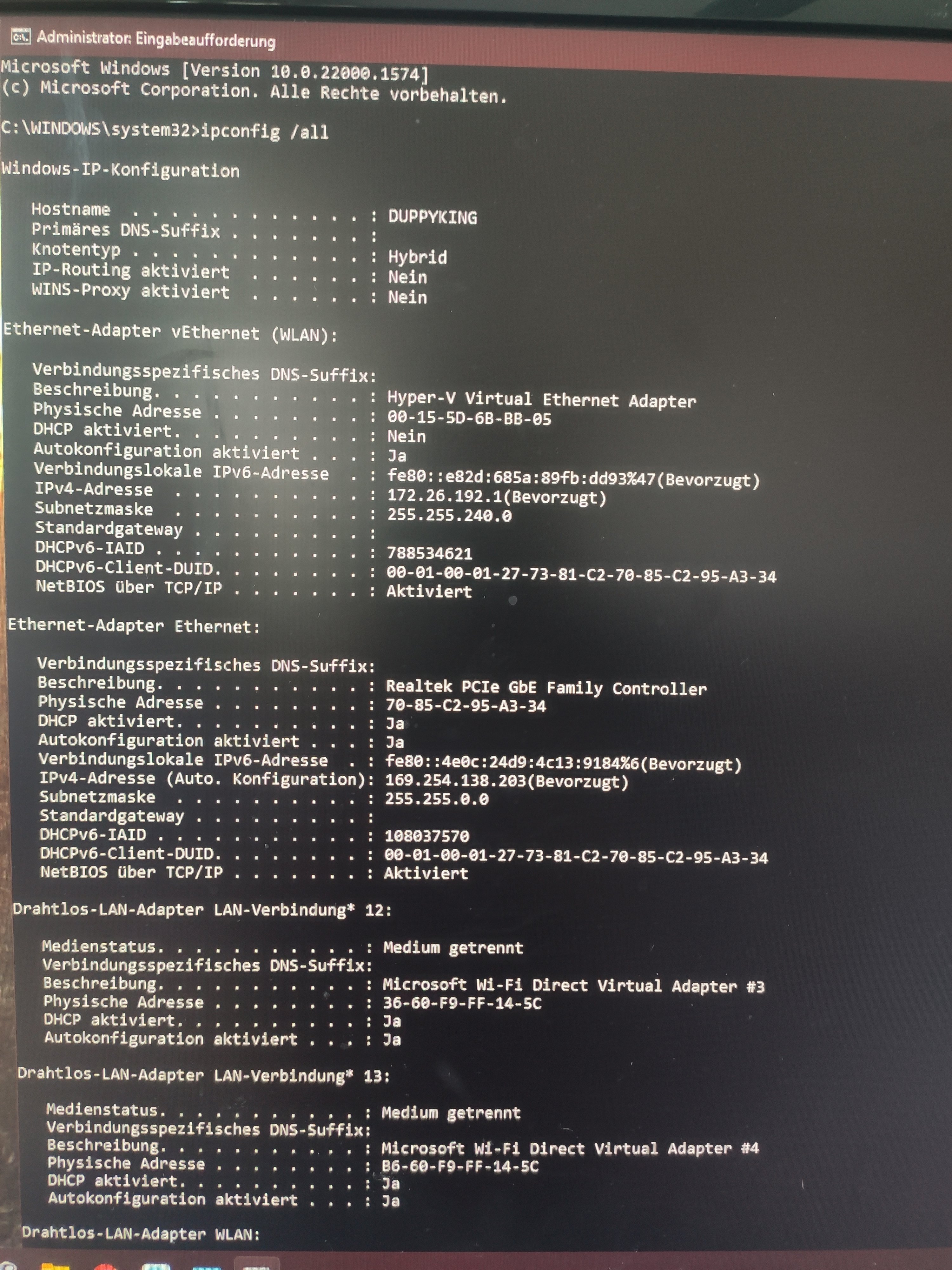 Nun funktioniert auch die LAN-Verbindung über Kabel nicht mehr.