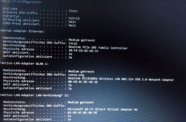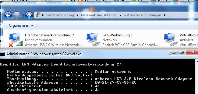 Angezeigt wird mir einfach sturr "keine Internetverbindung", unabhängig davon was ich mache. Den Router selber erreiche ich über LAN, allerdings sind alle Angaben bei einer IP-Abfrage bei der WLAN Verbindung (ipconfig) leer.