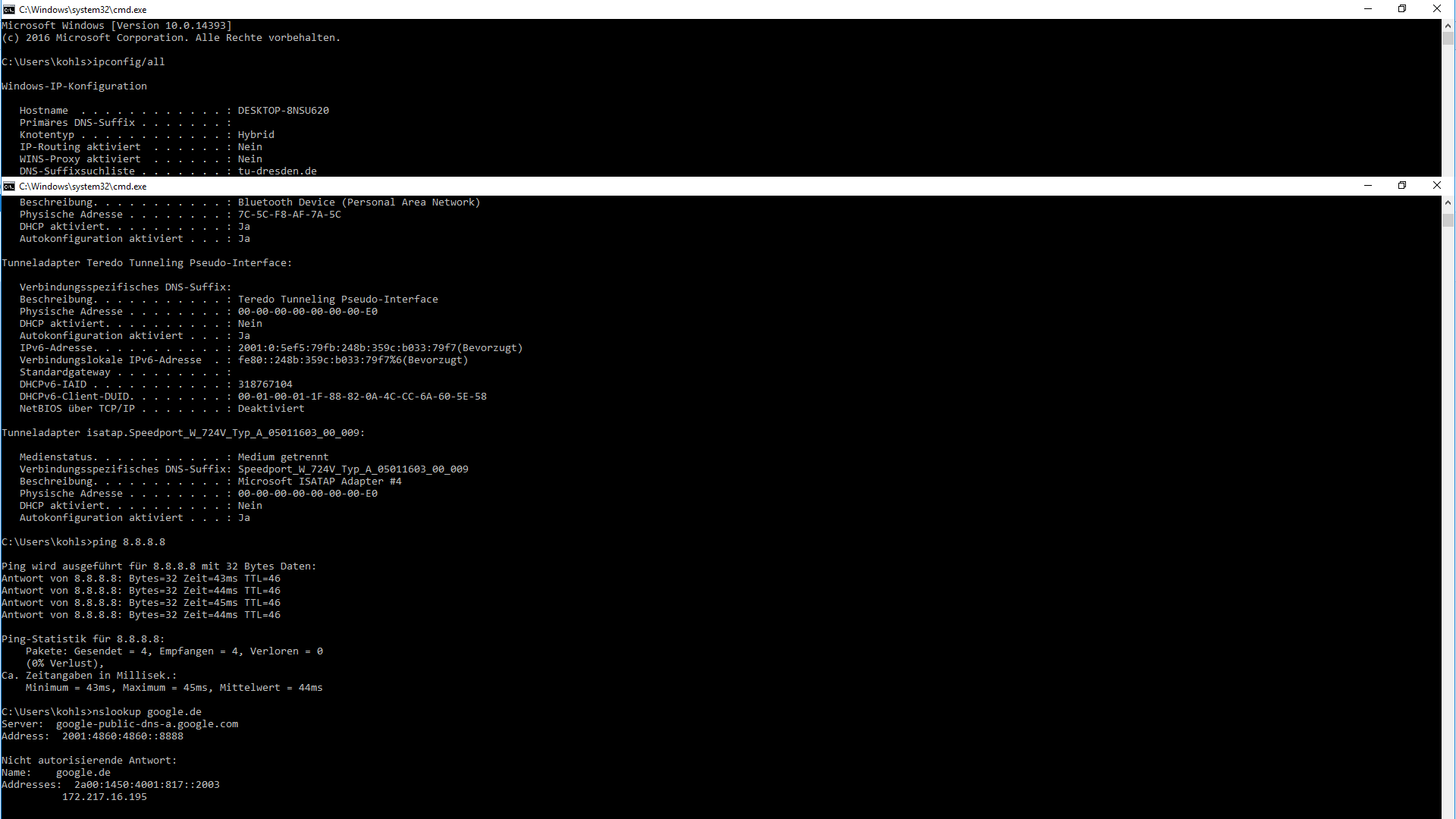 Nun zum Problem. Seit geraumer Zeit habe ich ständig keine Internetverbindung laut Browser. Egal ob ich vorher via LAN oder WLAN verbunden war. Kurioserweise geht Google. Wenn ich dann auf eine Seite gehe kommt "Die Website ist nicht erreichbar" auch Download mit externen Programmen geht nicht (zb Nvidia Updates usw.) sobald ich den Rechner neu gestartet habe, geht es wieder.