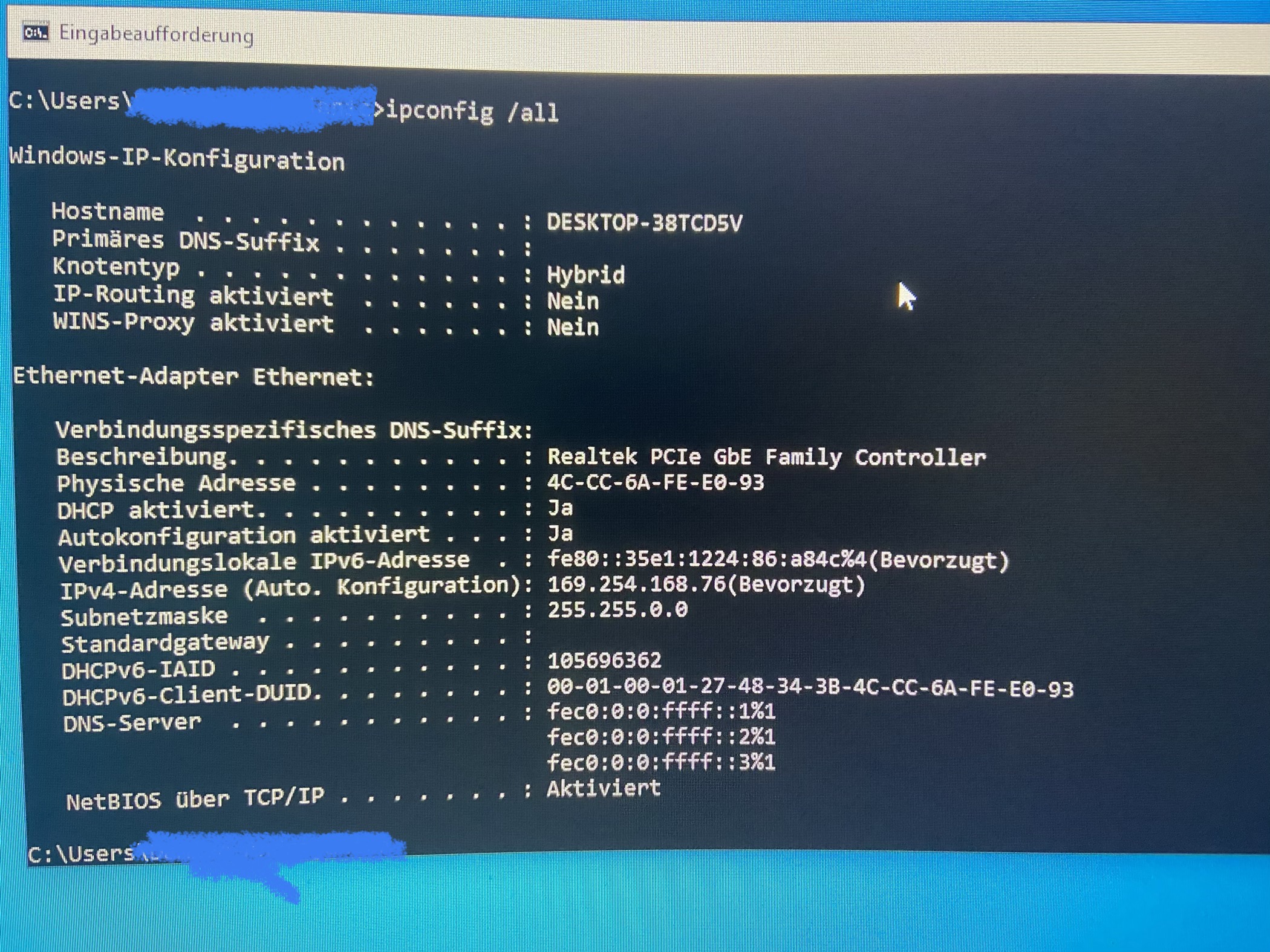 -ich habe in der eingabeaufforferung die folgenden Befehle eingeben: ipconfig /Release und ipconfig /renew jedoch bekam ich dann eine weitere Fehlermeldung und die lautet: Beim aktualisieren der Schnittstelle „Ethernet“ ist folgender Fehler aufgetreten; es kann keine Verbindung mit dem DHCP-Server hergestellt werden. Anforderung wurde wegen zeitüberschreitung abgebrochen.