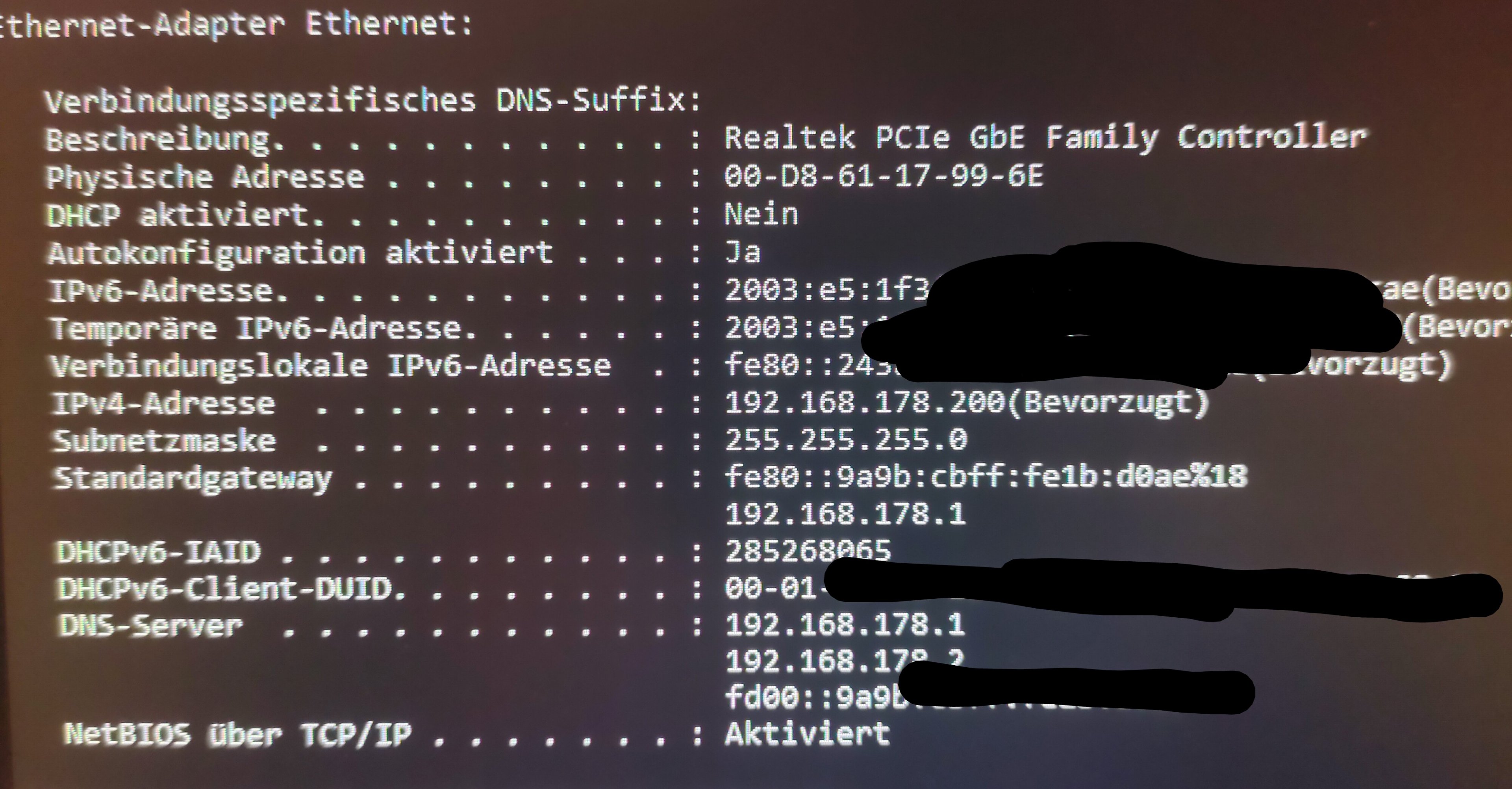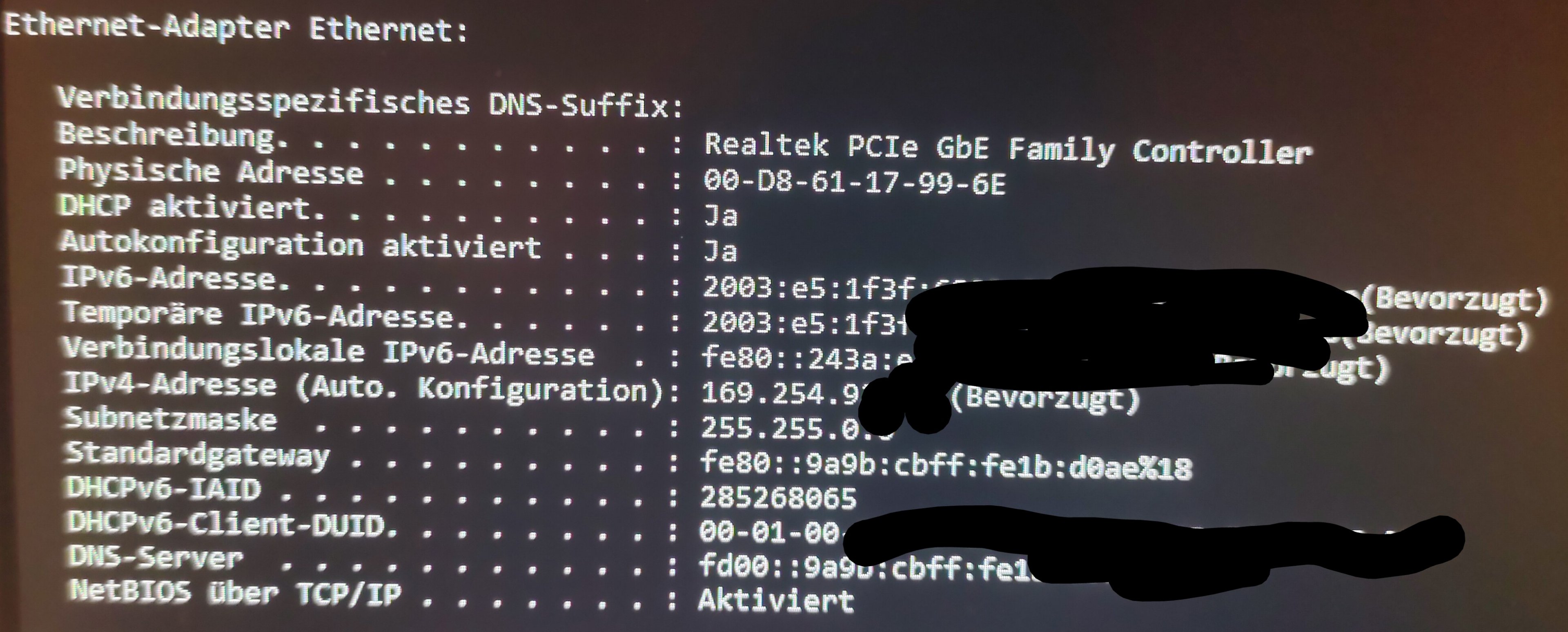 Wie er am Router hängt habe ich oben beschrieben. Feste IP außerhalb der DHCP-Range hat auch nicht funktioniert. Neues Kabel habe ich ja auch schon versucht. Das Internet bricht nicht weg, es ist einfach nie da, seitdem ich den PC am Freitagabend gestartet habe.prian schrieb:@samuelm