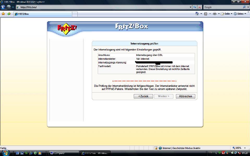 Also die Lampe für Internet leuchtet net, weil ich erst mal die Zugangsdaten eingeben muss, aber die kommen nicht beim Anbieter an weil die PPPoP Pakte net beantwortet werden oder so Siehe oben Anhang