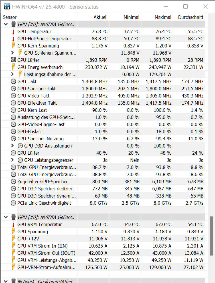 Also per HWinfo mal die Werte ausgelesen und geschaut da hab ich bemerkt unter Last liefert das Netzteil nur noch 11.2 V dachte dadurch drosselt sich unter Volllast evtl etwas.