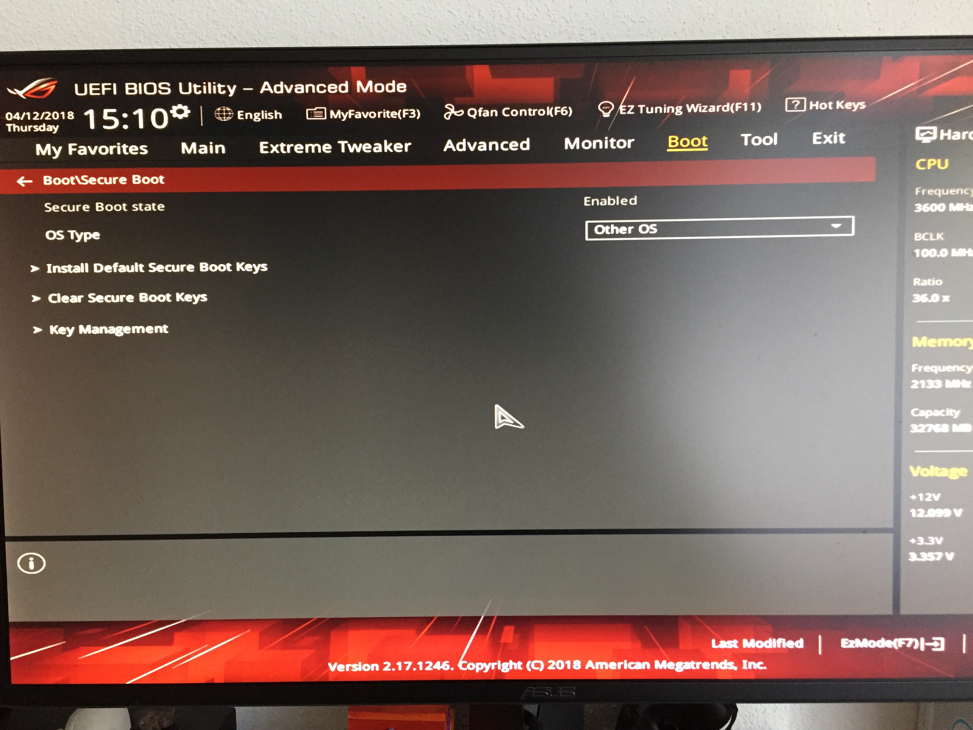 Ich denke es hat irgedwas mit diesen Secure-Boot zu tun, leider kenn ich mich da überhaupt nicht aus und ich möchte im Bios nichts falsches einstellen.