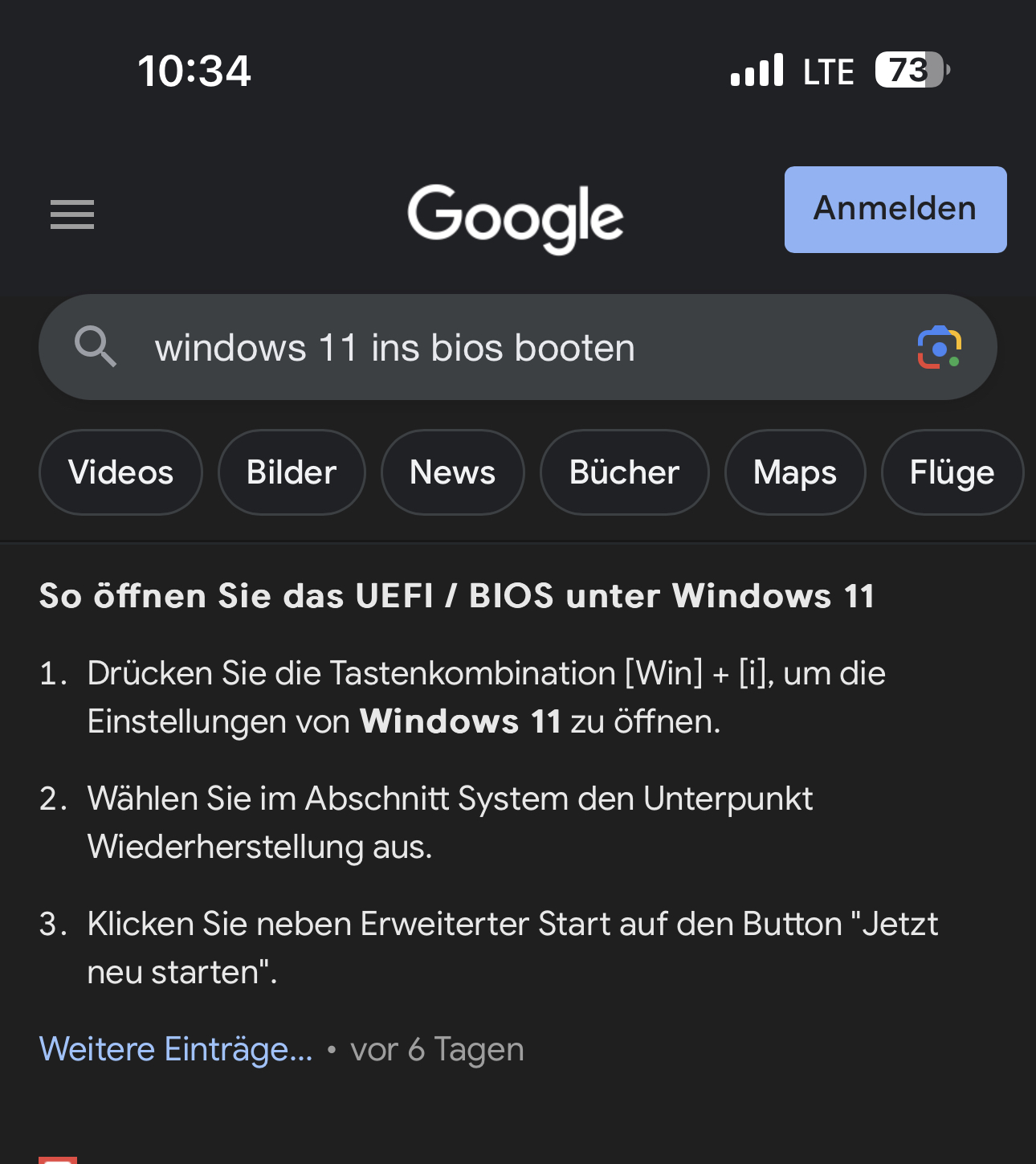 Ich habe seit dem Letzten Update von Win11 Probleme ins Bios zu kommen.