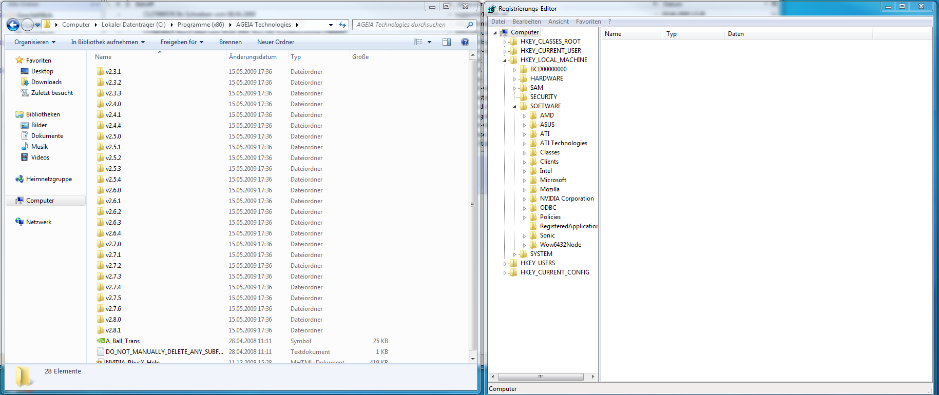 Also in der Regedit ist der Ageia Ordner leider nicht aufgeführt, werde wohl noch mal deinstallieren und neuanfangen..