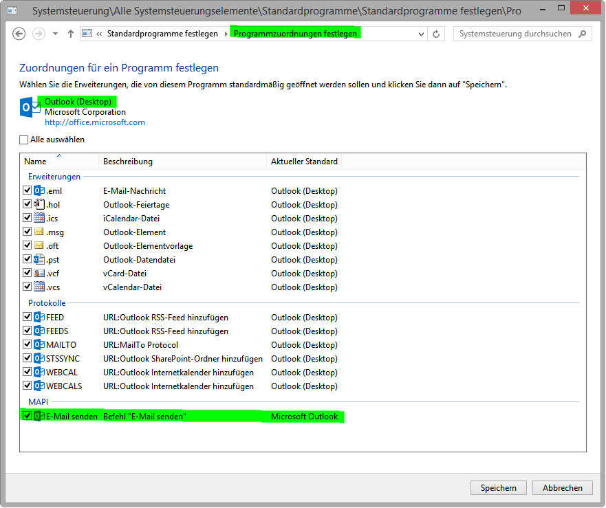 Übrigens: "Senden an" Desktop, Word etc. funktioniert einwandfrei, nur eben nicht an Outlook.