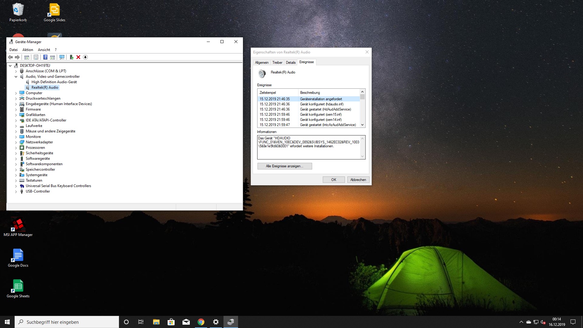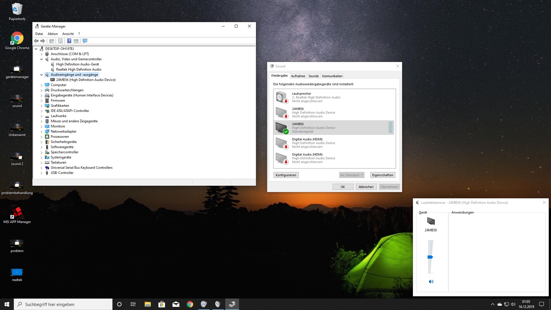 Neueste Audiotreiber von Realtek habe ich runtergeladen. Diese werden auch im Gerätemanager angezeigt!