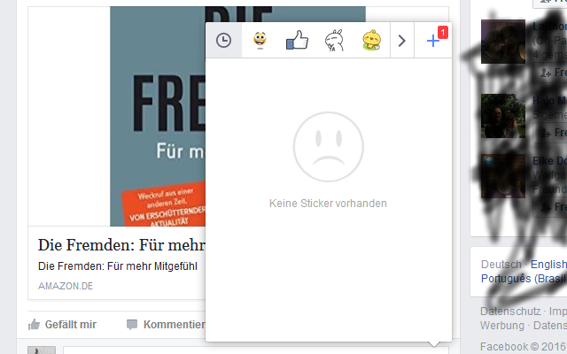 Wenn ich in FB eine Nachricht schreiben will, habe ich alles was ich selber installiert habe. Die eigentlich vorhandenen Sticker aber nciht, nur im chat, da sind sie seltsamer Weise