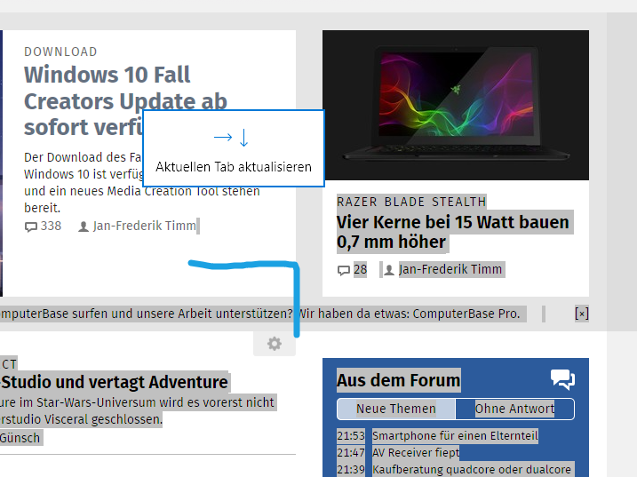 man sieht mein gemaltes "rechts-unten", den fälschlich markieren Text aber auch das "Aktuellen Tab aktualisieren", nur passiert das nicht, sondern dieses Bild bleibt stehen!