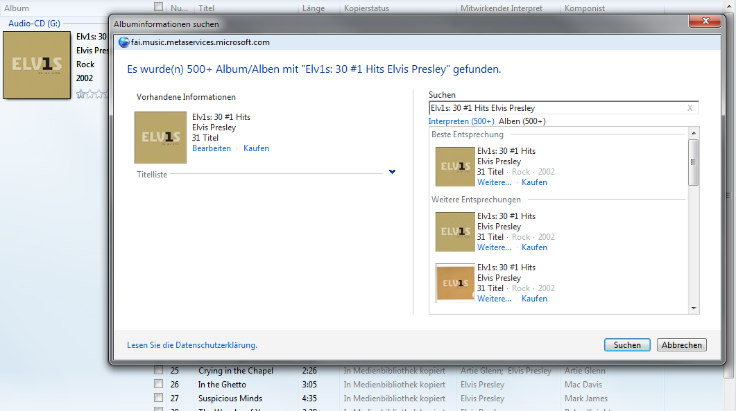 An der CD liegt es meiner Meinung nicht, da es bei mehreren CDs nicht klappt. Zudem hab ich ein Album, welches ich früher mitsamt Titeln konvertiert habe, wo mir jetzt auch keine Titel mehr angezeigt wurden. Am PC meiner Mutter passierte genau dasselbe, deswegen schließe ich ein Laufwerkproblem aus. Ich denke es hat was mit der Software zu tun. Ich hoffe ihr könnt mir weiterhelfen!