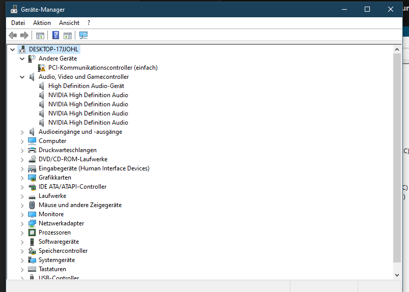 Und ein Audio-Gerät scheint ja installiert zu sein. Was bedeutet der Lautsprecher wird nicht erkannt?