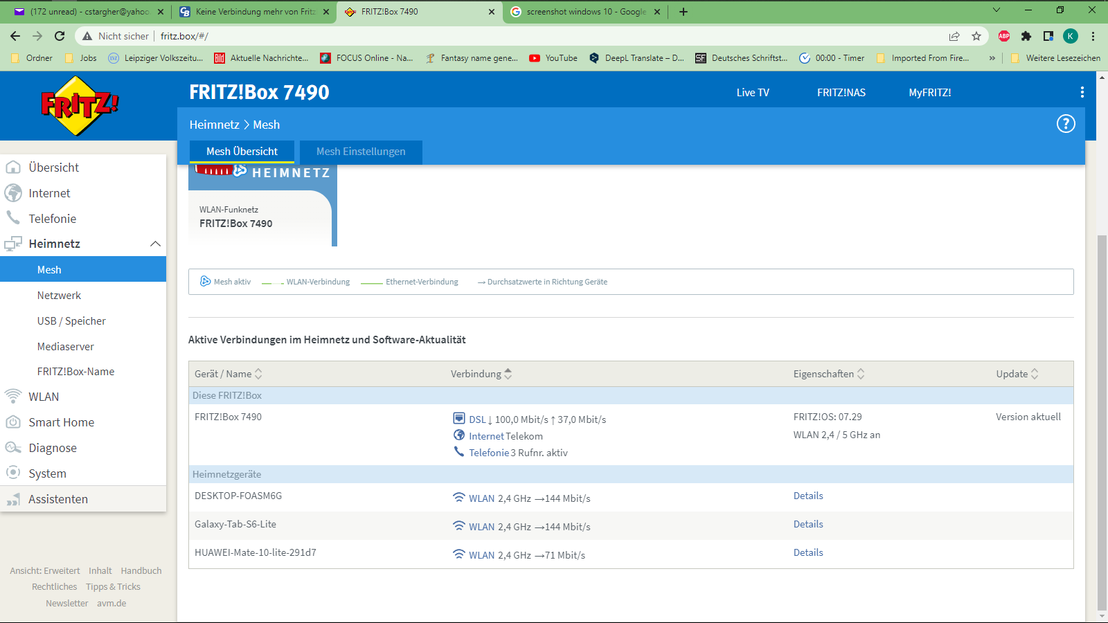 WLAN ist in der ganzen Wohnung verfügbar, Internet über Smart-TV läuft problemlos, obwohl der Router in einem anderen Raum ist.