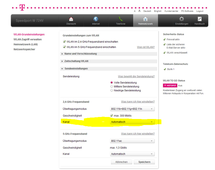 Der Router ist ein Speedport W724V mit aktueller Firmware und deaktivierter MAC-Filterung. Andere Gerät haben kein Problem, sich ins Netzwerk einzuloggen.