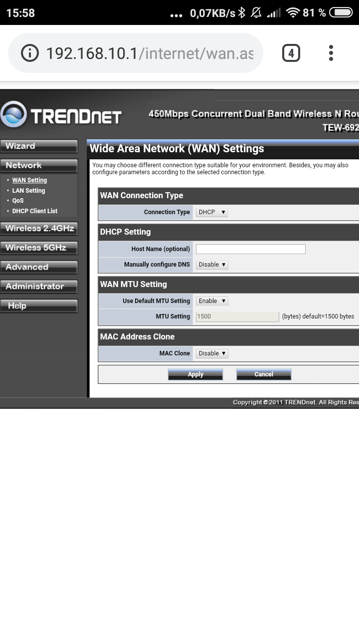 Die 192.168.10.1 zeigt es mir auch an wenn ich mich per WLAN mit dem Handy verbinde. Allerdings bekomme ich keine Verbindung wenn ich die IP wie gewohnt in die URL Zeile tippe???