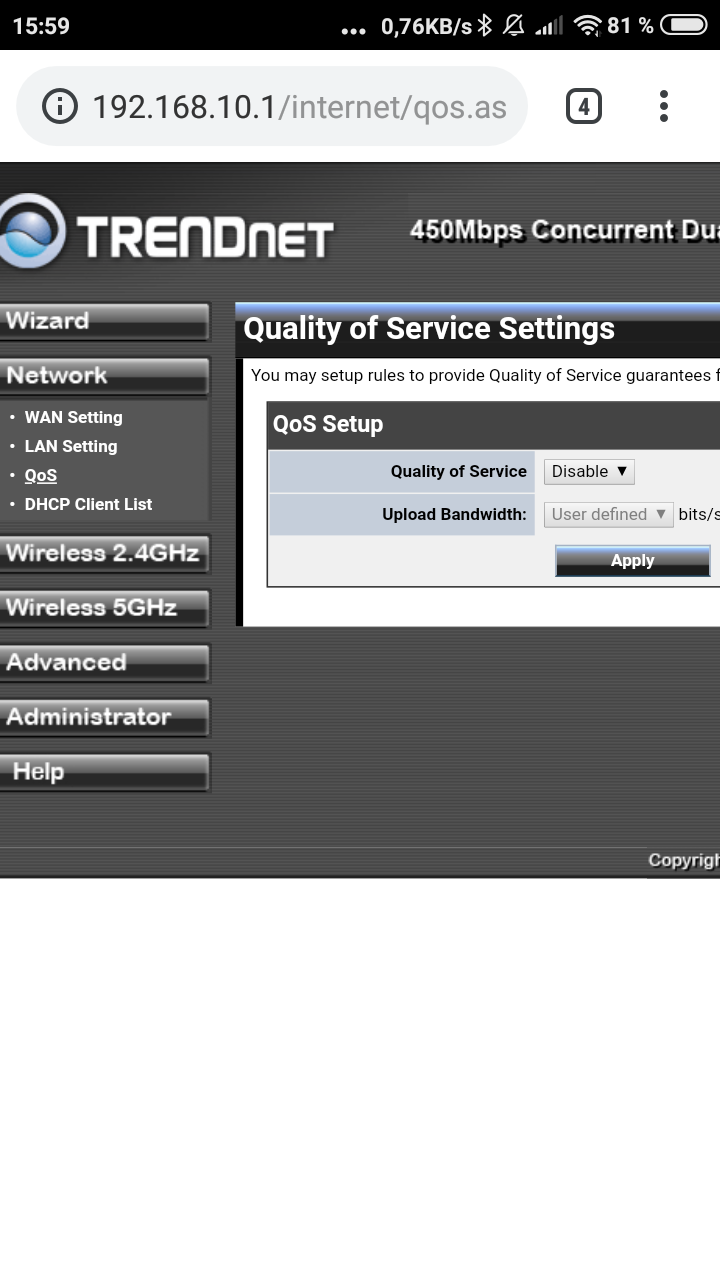 Jetzt wollte ich meinen zweiten Router als AP nutzen (eine Etage höher mit LAN Verbindung). Also Kabelverbindung zur FB getrennt, Netzwerkadapter am PC neu gestartet und den trendnet per Reset zurück gesetzt. Standard IP vom trendnet ist lt Anleitung und auch deren Seite 192.168.10.1.