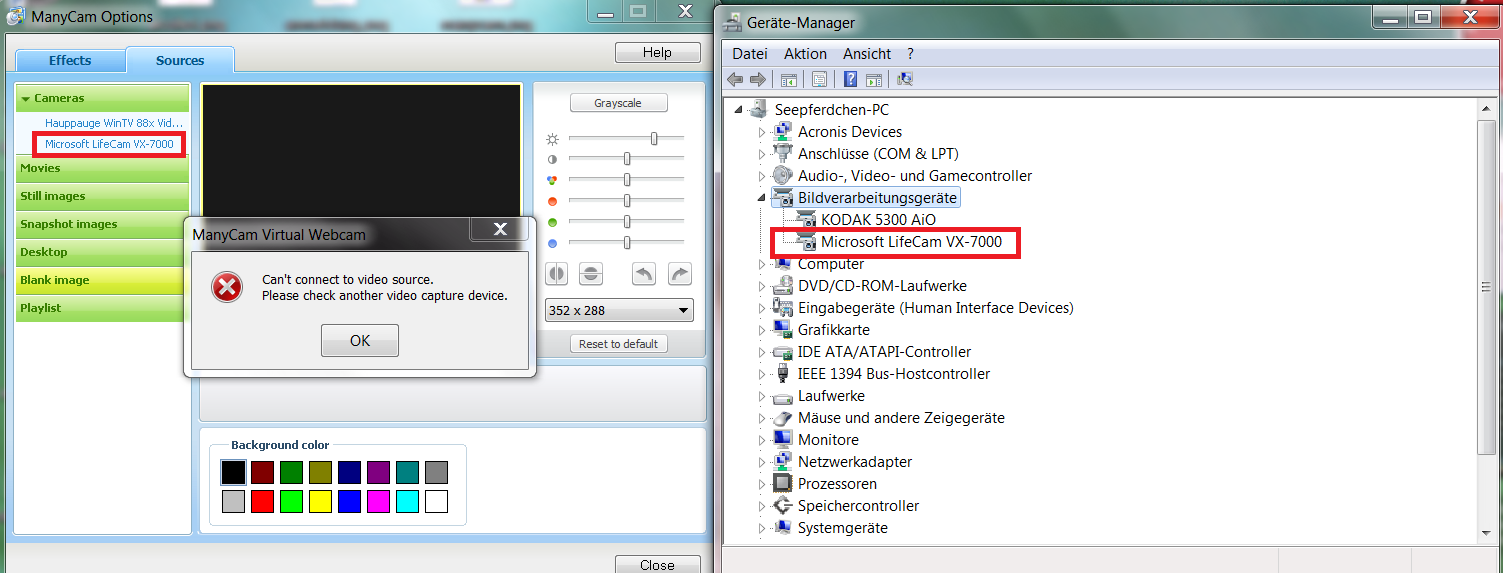 Wenn man der Webcam die Treiber per Hand "Aufzwingt" gibt es Code 10 - Gerät konnte nicht gestartet werden.