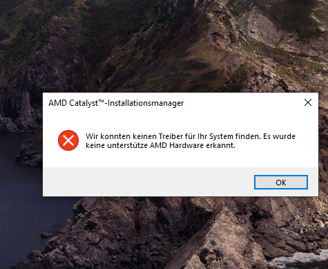 AMD automatischer TreiberFinder fand keine AMD-Karte im System.