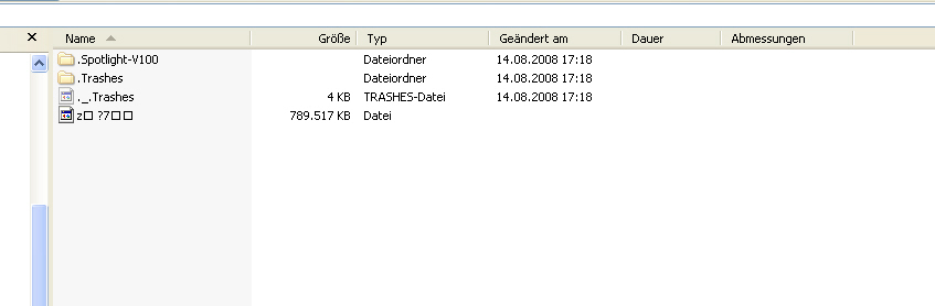 ich habe ein heftigeres Problem mit meiner Festplatte. Nach eine Stromausfall vor einiger Zeit sehe ich auf meiner externen Platte (400GB Trekstor) nur noch den folgenden Screenshoot. Was kann da passiert sein? Und vor allem, was kann ich machen, dass ich wieder an die Daten komme?!