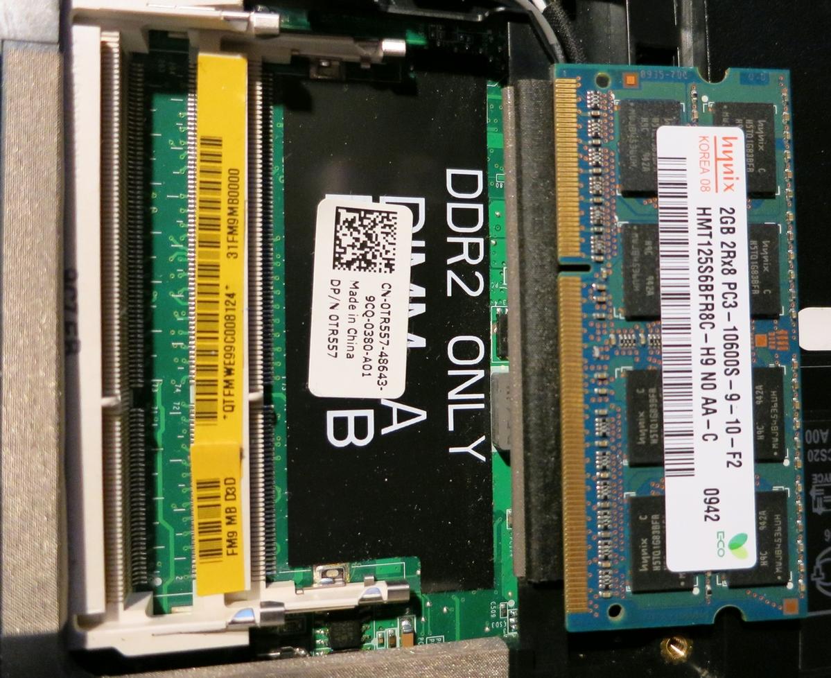 Kann es sein, daß Dell hier einen falschen Aufkleber verwendet hat? Denn wenn ich die PINs und die Beschriftung der RAM-Riegel richtig deute, dann sind das doch DDR3?