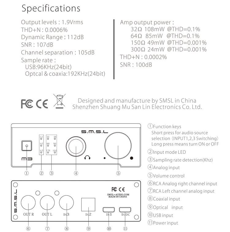 Ich habe mal zu den genaueren Spezifikationen zum SMSL M3 nachgeschaut und folgendes Zitat gefunden: