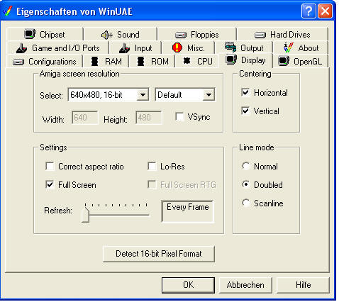 Hi kennt sic hhier jemand mit Winuae aus? Wenn ich ein Amigaspiel lade habe ich während des Spielens oben und unten so schwarze Balken, Habe in den Display Optionen schon einiges eingestellt kriege es aber nicht hin. Wenn der Anfangsbildschirm mit der Workbencherscheint schaut es normal aus aber sobald ein Spiel geladen ist...
