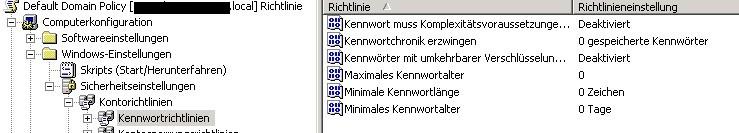 Zur Zeit ist die Kennwortrichtlinie unter der Default Domain Policy deaktiviert (siehe zweiter Anhang)