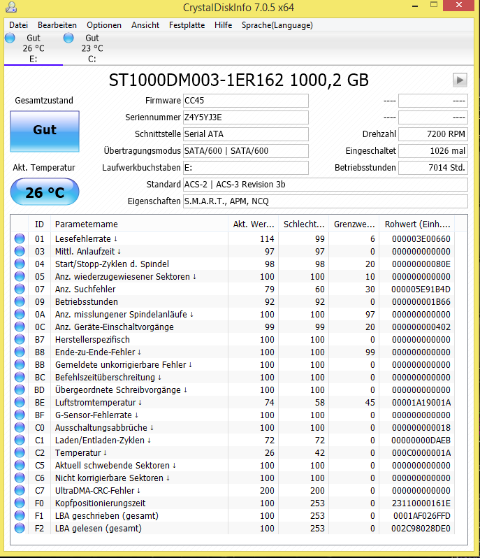 C7 200 200 __0 000000000000 UltraDMA-CRC-Fehler ↓