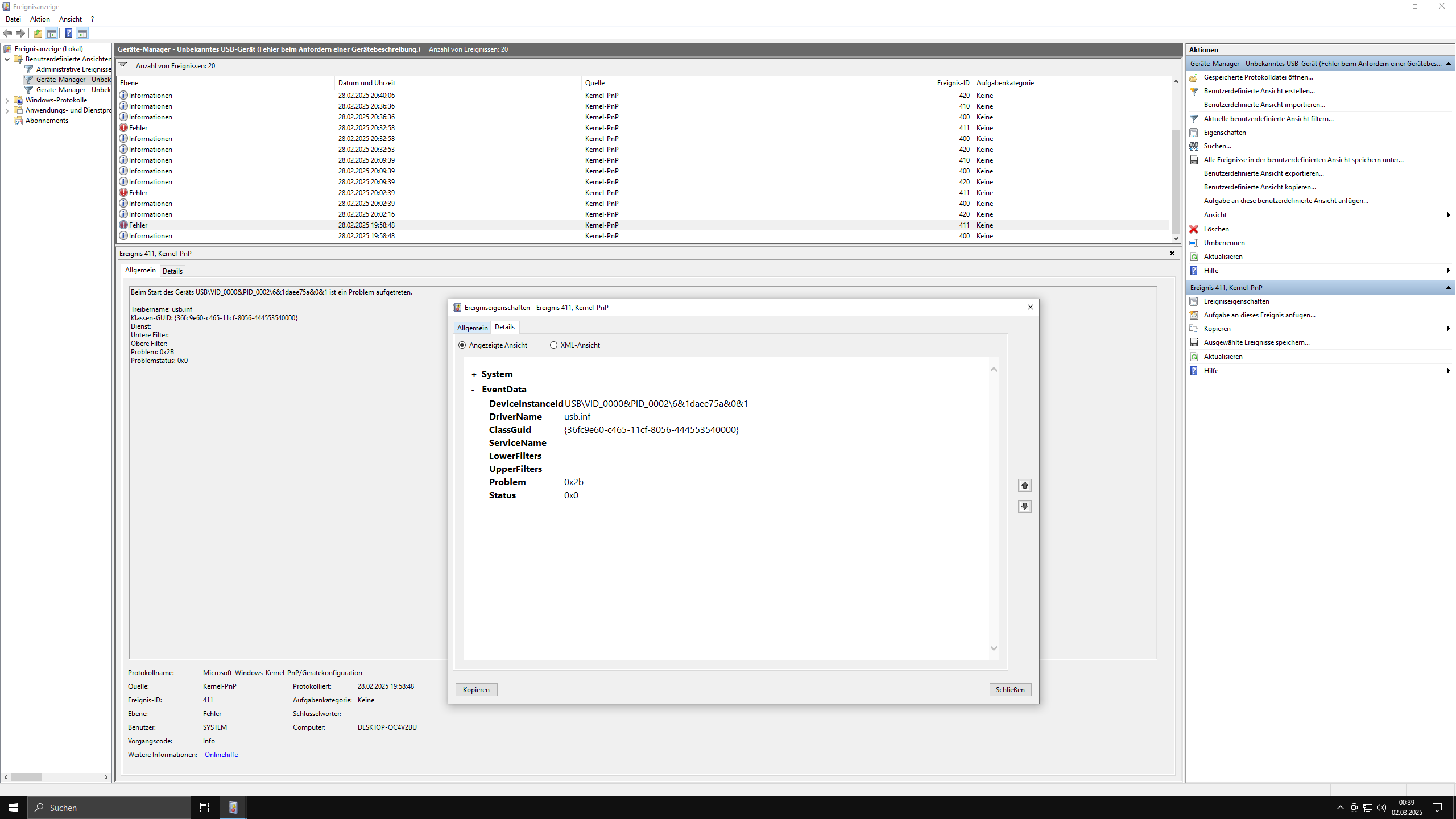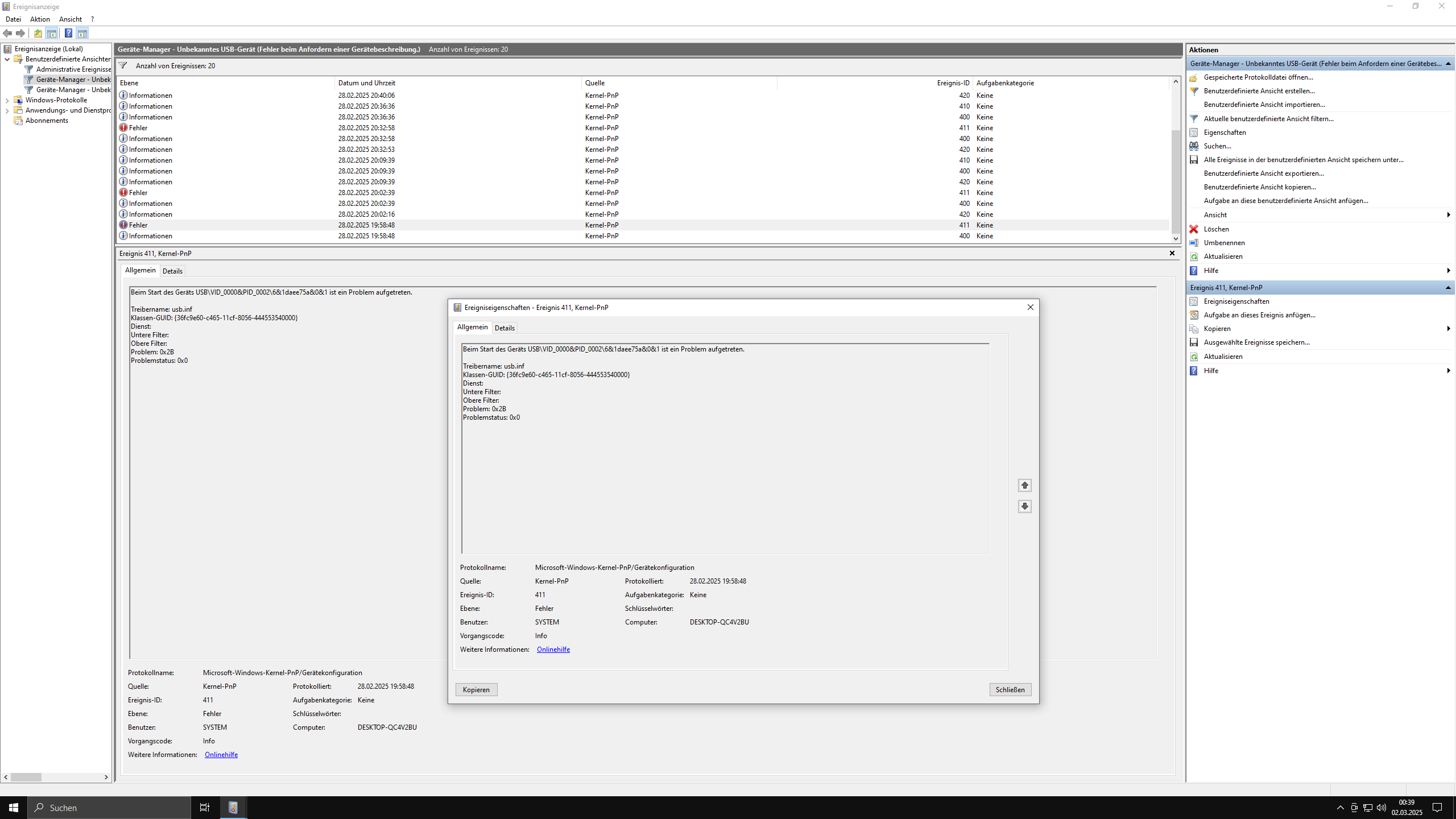 bei meinen rechner fallen ständig die usb geräte aus und an hinten und vorne dazu tippt die tastatur öfters doppelte buchstaben