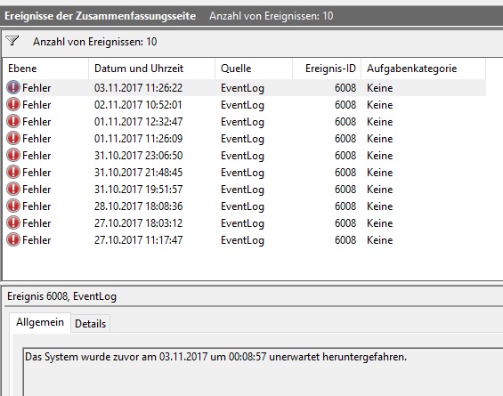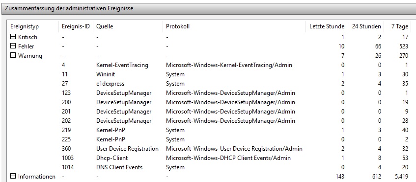 Die Ereignisanzeige liefert zunächst nicht viel: