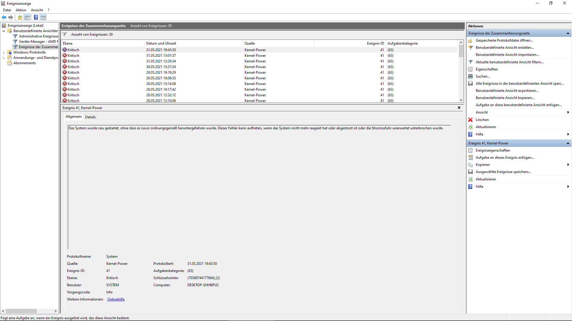Der Ablauf ist folgender: Blackscreen, habe noch kurz Sound, dann höre ich nur noch drrrrrrrrr und der Pc startet sich neu. Im Ereignisprotokoll sieht man Kernel Power 41 (63).