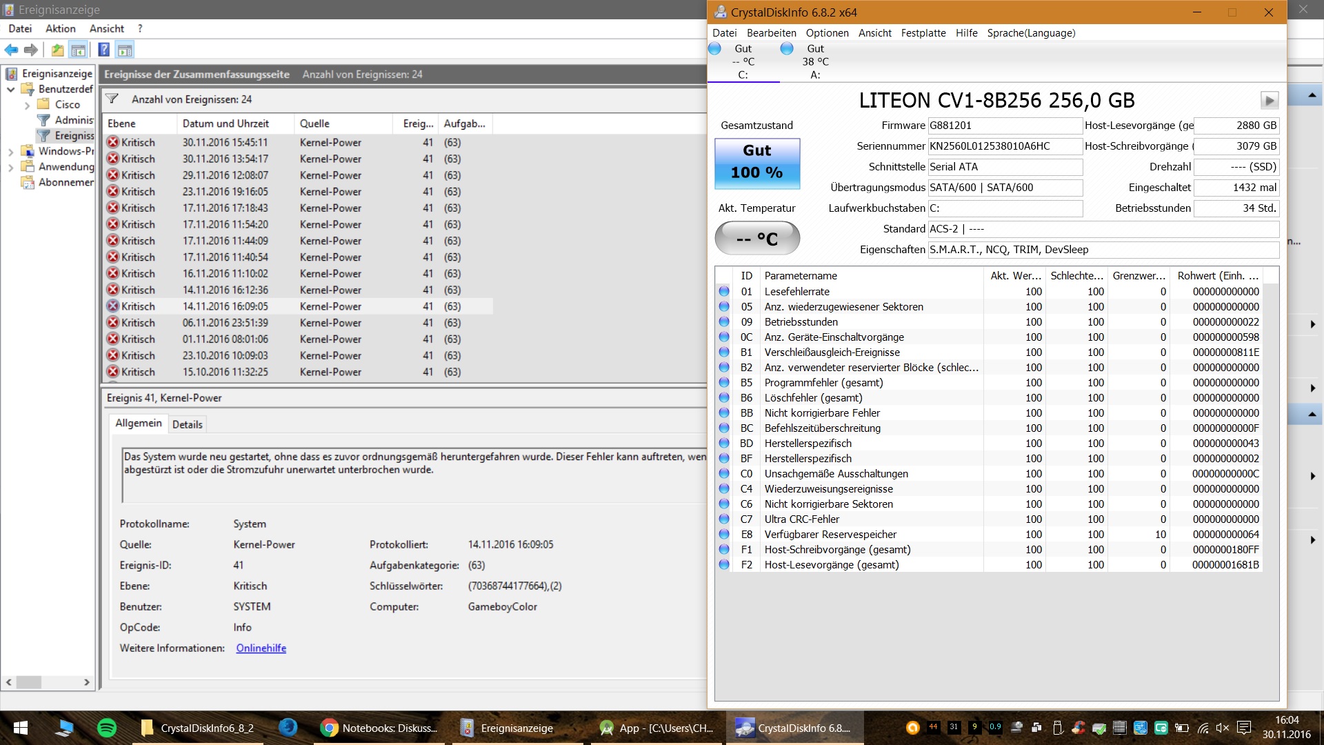 Hallo, ich habe das Acer Aspire V 15 (V5-591G-75GP), welches permanent im laufenden Betrieb abstürzt. In der Ereignisanzeige wird als Grund der Fehler Kernel-Power, Ereignis 41, Aufgabenkategorie (63) angezeigt.